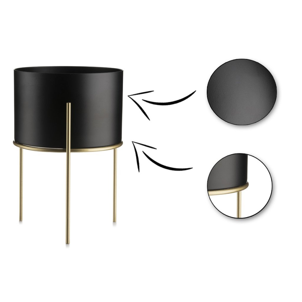 KOVOVÝ KVĚTINÁČ SE STOJÁNEM LOFT 22X18 CM ČERNÁ/ZLATÁ
