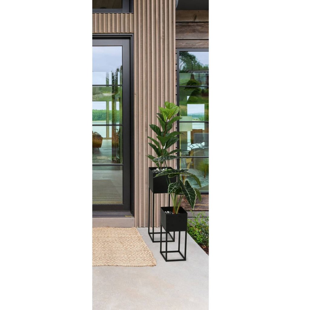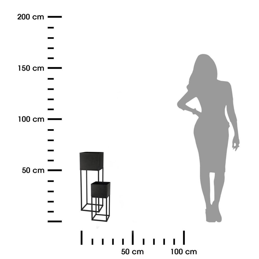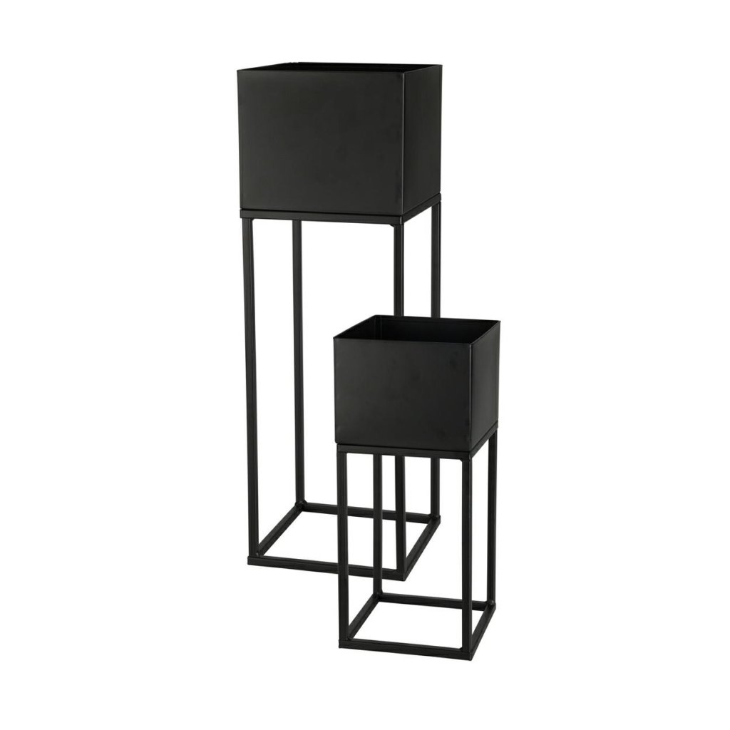 KOVOVÝ KVĚTINÁČ SE STOJÁNEM PLAIN SADA 2KS 58X19 CM+37X16 CM ČERNÁ