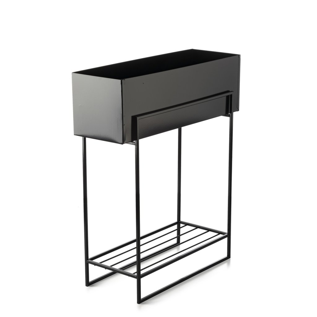 KOVOVÝ KVĚTINÁČ SE STOJÁNEM RECT 72X23X60 CM ČERNÁ