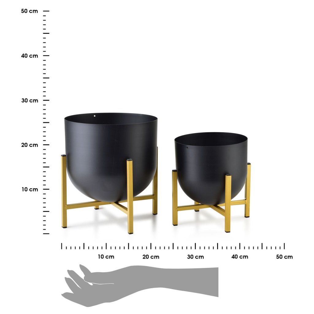 KOVOVÝ KVĚTINÁČ SE STOJÁNEM SWEN BOULE SADA 2KS 20X22 CM+16X17 CM ČERNÁ/ZLATÁ