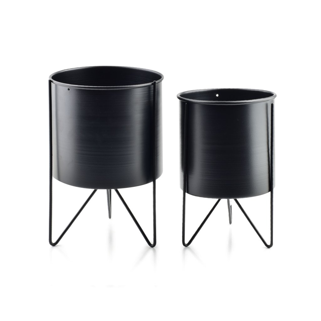 KOVOVÝ KVĚTINÁČ SE STOJÁNEM SWEN CYLINDRE SADA 2KS 26X18 CM+14,5X16 CM ČERNÁ