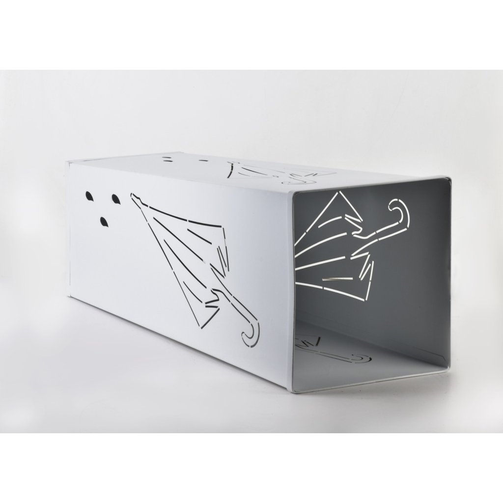 Elegantní stojan na deštníky vyrobený z odolného kovu v bílé barvě, ideální do každé předsíně. Výřezy ve tvaru deštníku s ozdobnými kapkami deště mu dodávají jedinečný charakter a zároveň slouží také jako ventilační funkce. Pevná konstrukce zajišťuje stabilitu a díky minimalistickému designu stojan dokonale zapadne do různých designů interiéru.Buďte první, kdo napíše příspěvek k této položce.