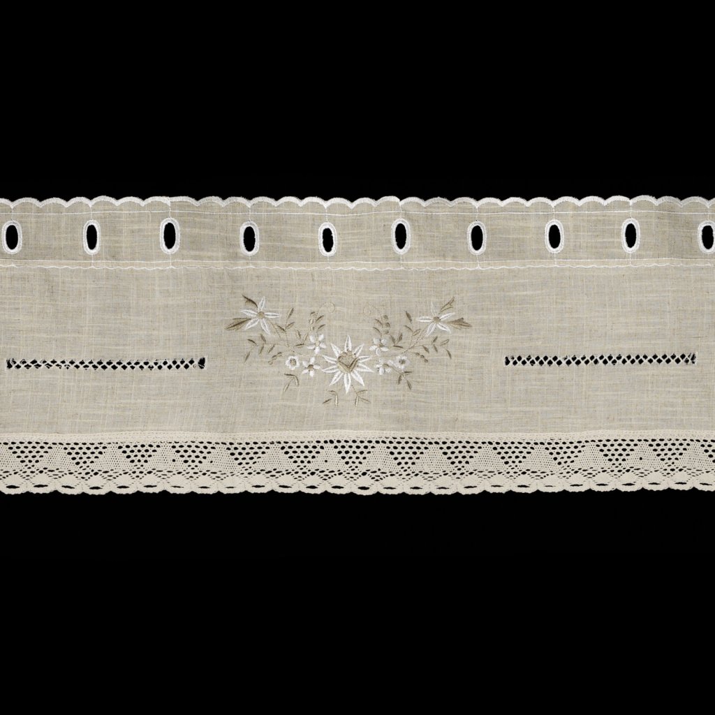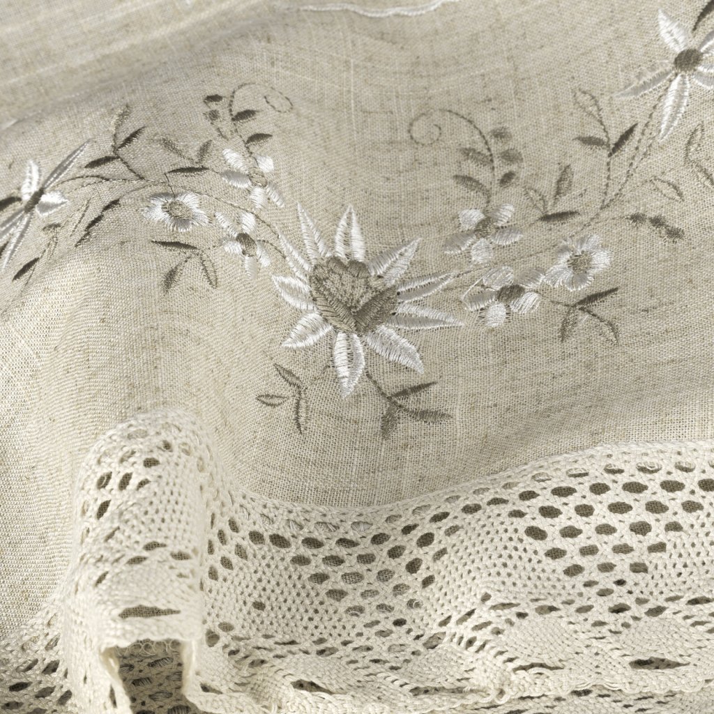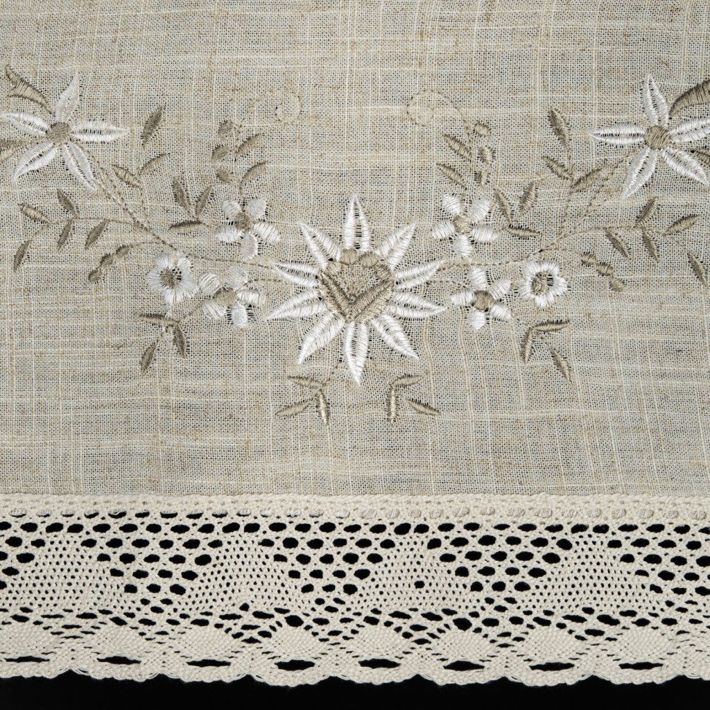Krátká záclona z látky s přídavkem lnu, zdobená výšivkou, šířka: 150 cm, délka: 30 cm, barva: béžová, hmotnost: 180 GSM, složení: 90% polyester, 10% len.Doplňkové parametry