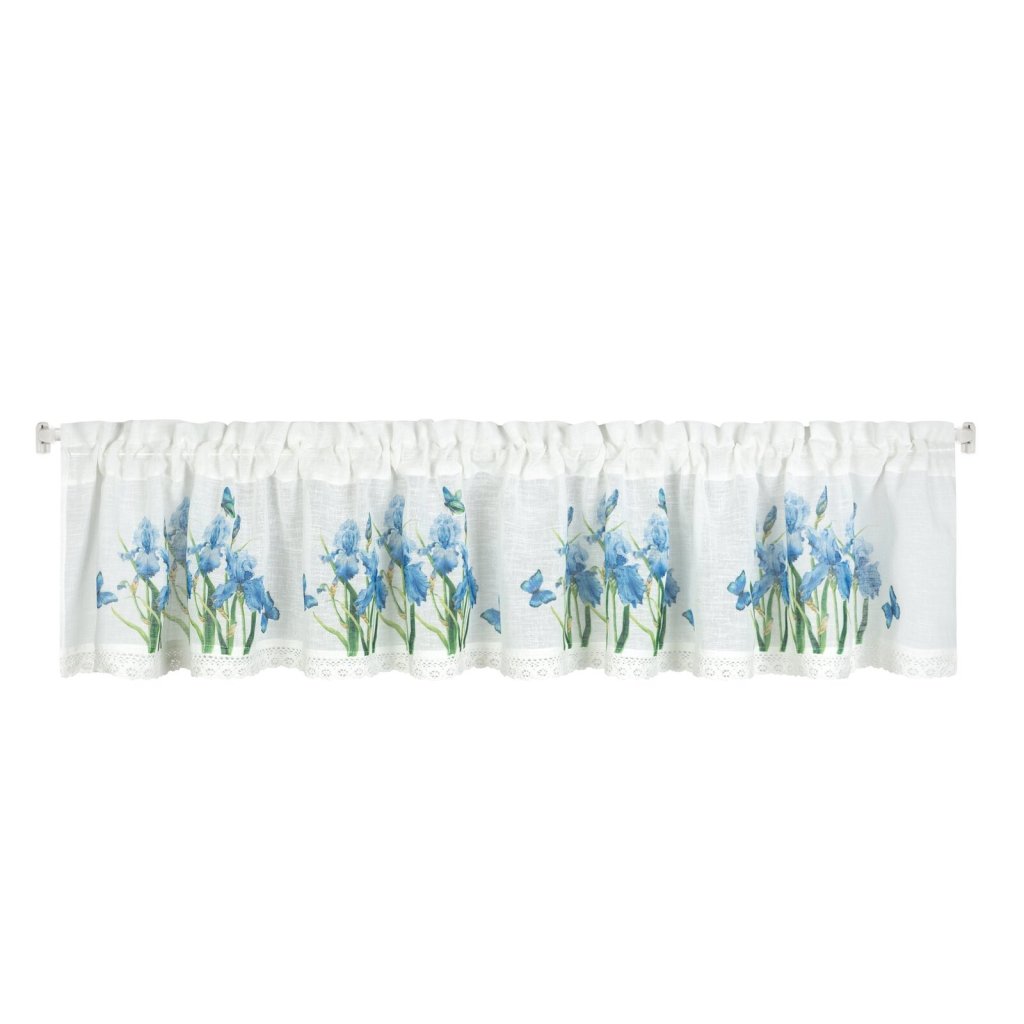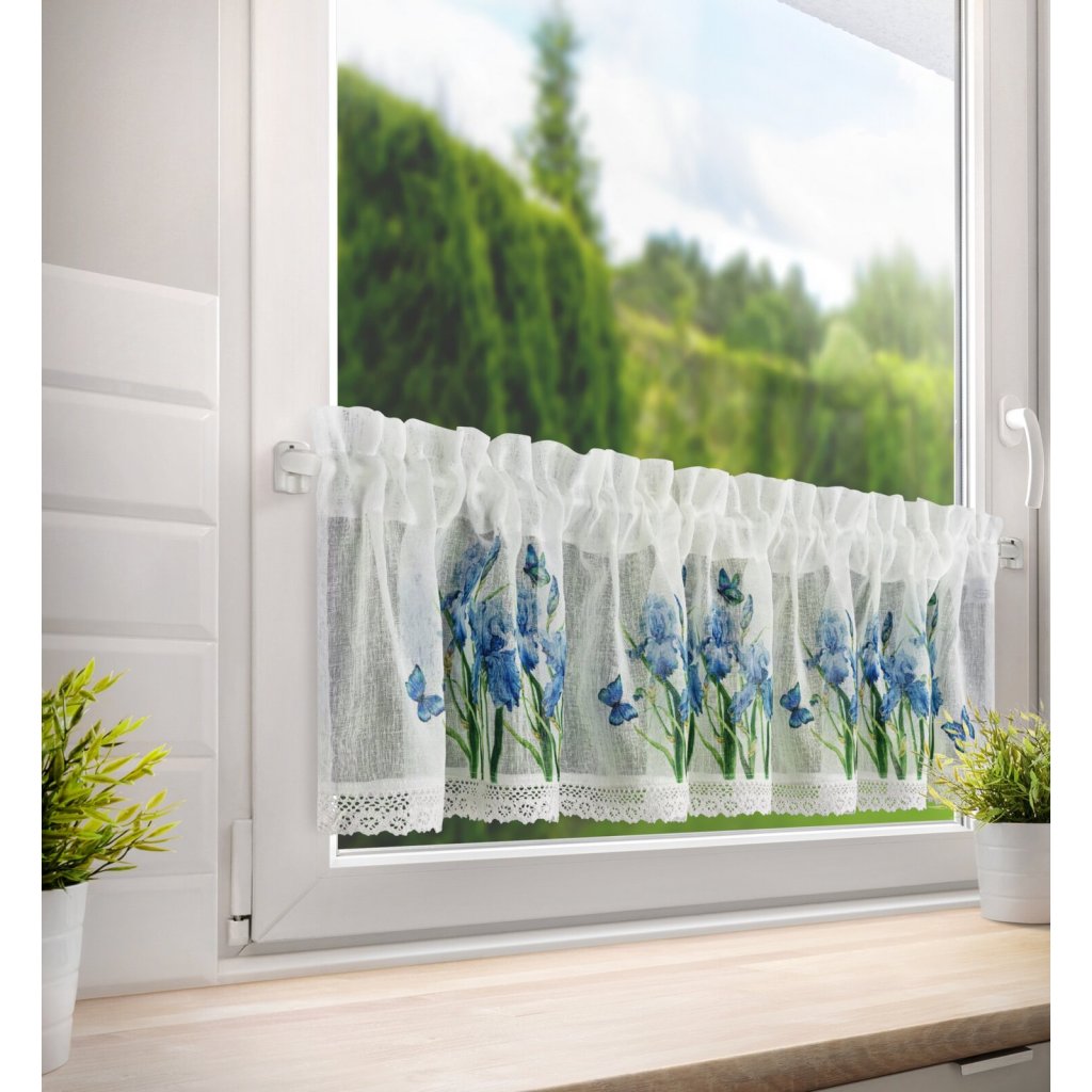 Záclona s potiskem zdobená krajkou. Šířka: 150 cm, délka: 30 cm, barva: vícebarevná, hmotnost: 110 GSM, složení: 100% polyester.Doplňkové parametry