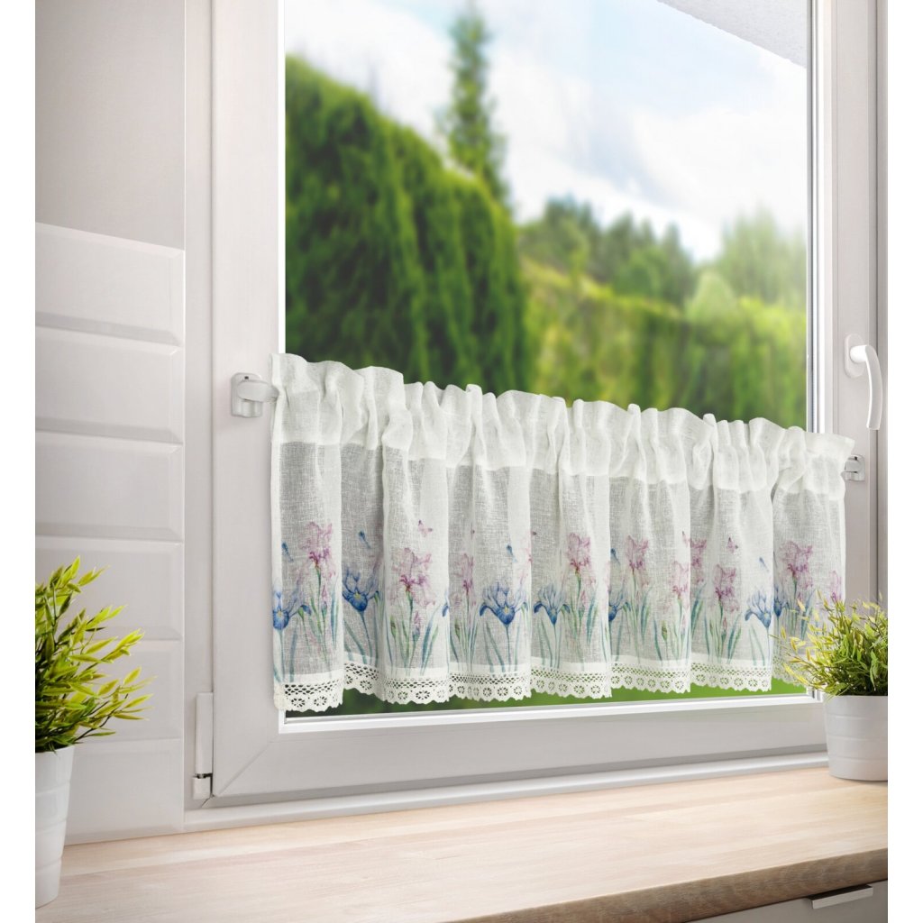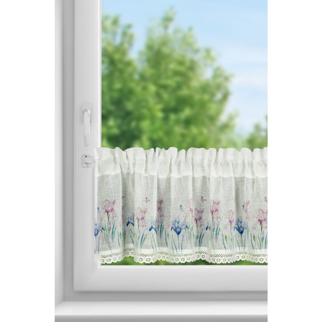 Gázová záclona zdobená potiskem letních květin je půvabnou dekorací, která vnese do interiéru svěží, jarní atmosféru. Celek navíc doplňuje decentní krajka všitá ve spodní části látky, která dodává elegantní a romantický charakter. Šířka: 150 cm, délka: 30 cm, barva: vícebarevná, hmotnost: 110 GSM, složení: 100% polyester.Doplňkové parametry