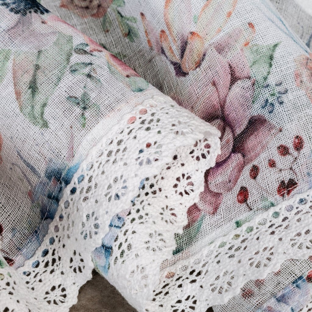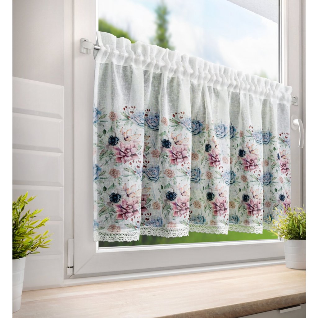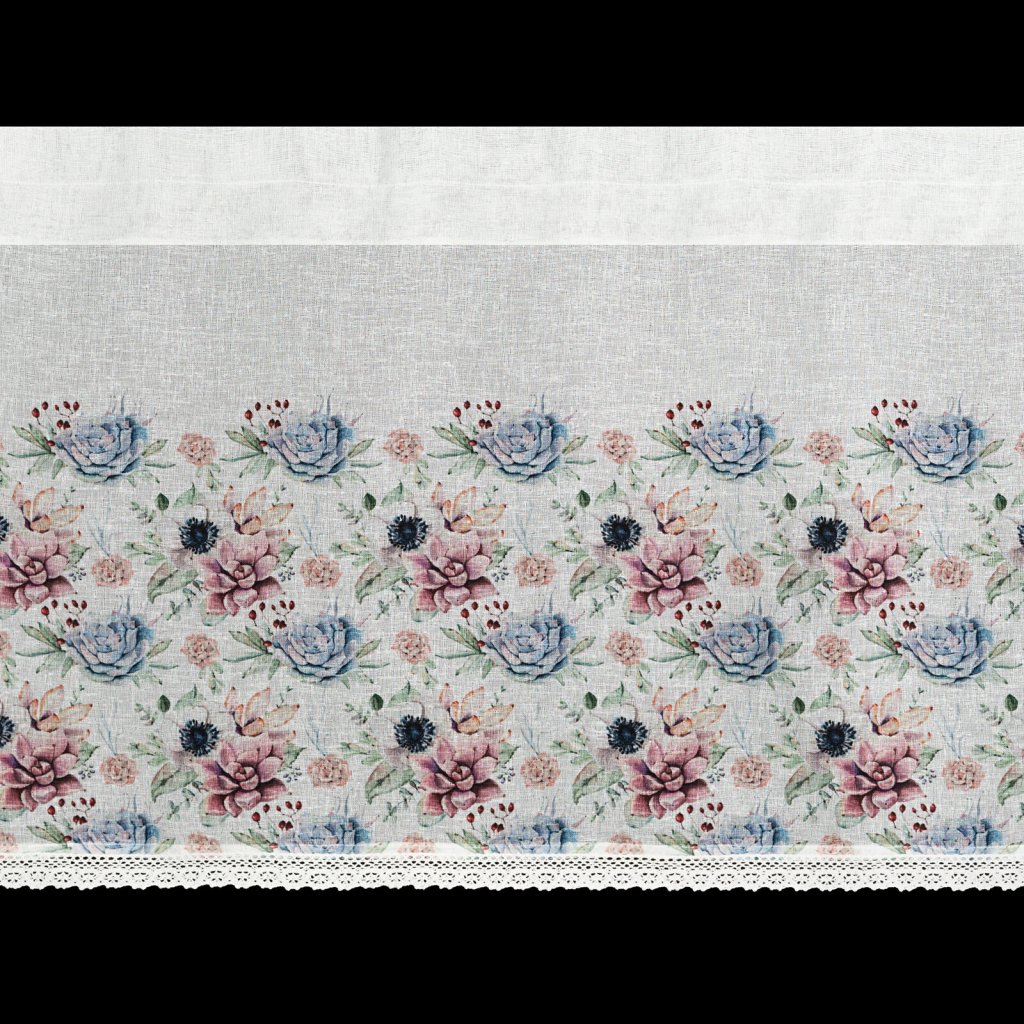Záclona s potiskem, zdobená krajkou, šířka: 150 cm, délka: 60 cm, barva: vícebarevná, hmotnost: 110 GSM, složení: 100% polyester.Doplňkové parametry
