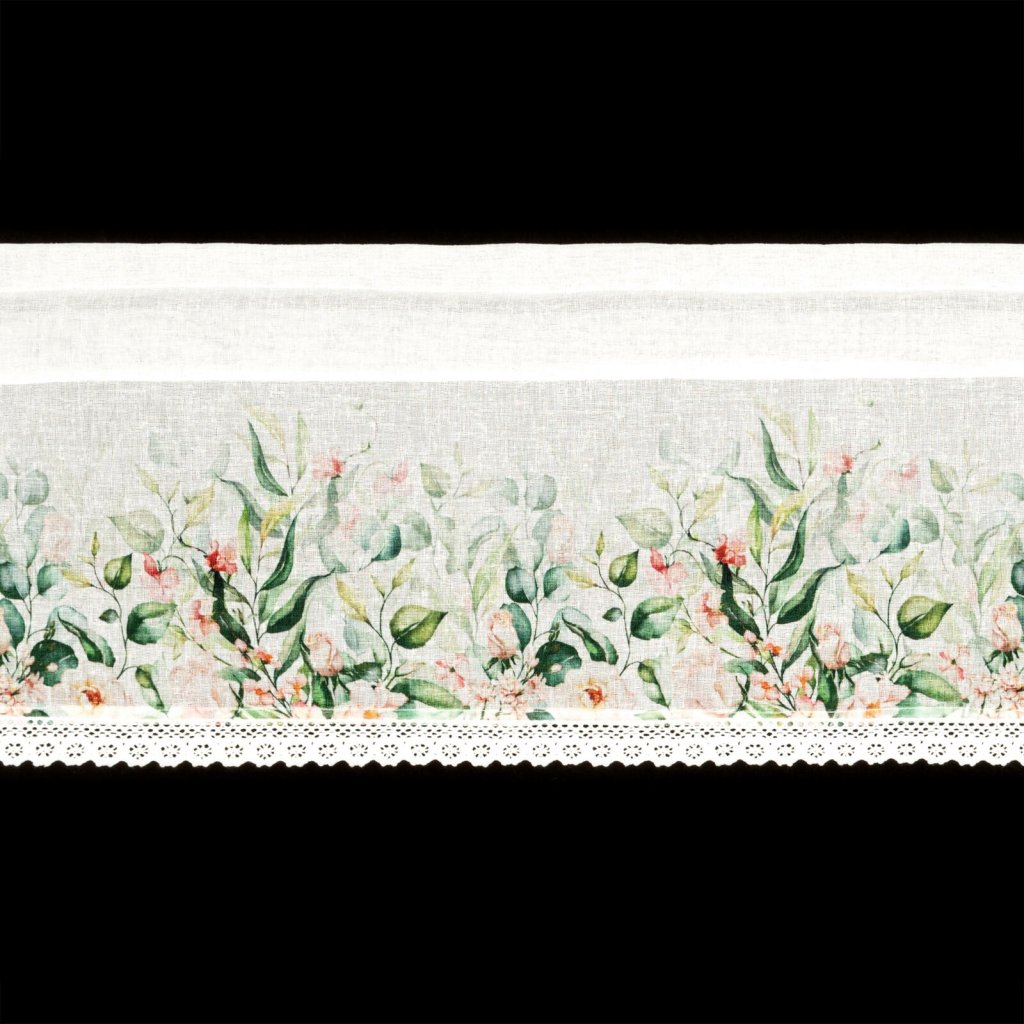 Gázová záclona zdobená potiskem letních květin je půvabnou dekorací, která vnese do interiéru svěží, jarní atmosféru. Celek navíc doplňuje decentní krajka všitá ve spodní části látky, která dodává elegantní a romantický charakter. Šířka: 150 cm, délka: 30 cm, barva: vícebarevná, hmotnost: 110 GSM, složení: 100% polyester.Doplňkové parametry