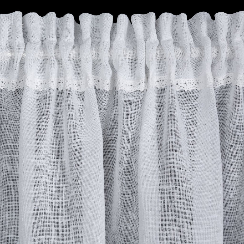 Záclona z gázy je elegantní a praktickou ozdobou okna, která vnáší do interiéru jemnou lehkost a útulnost. Další výhodou je krásná krajka všitá do spodní části látky, která celku dodává šarm a eleganci. Šířka: 150 cm, délka: 30 cm, barva: bílá, hmotnost: 110 GSM, složení: 100% polyester.Doplňkové parametry
