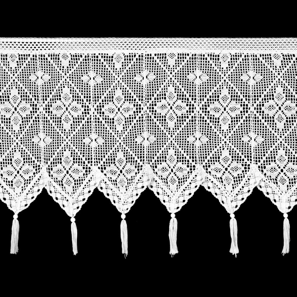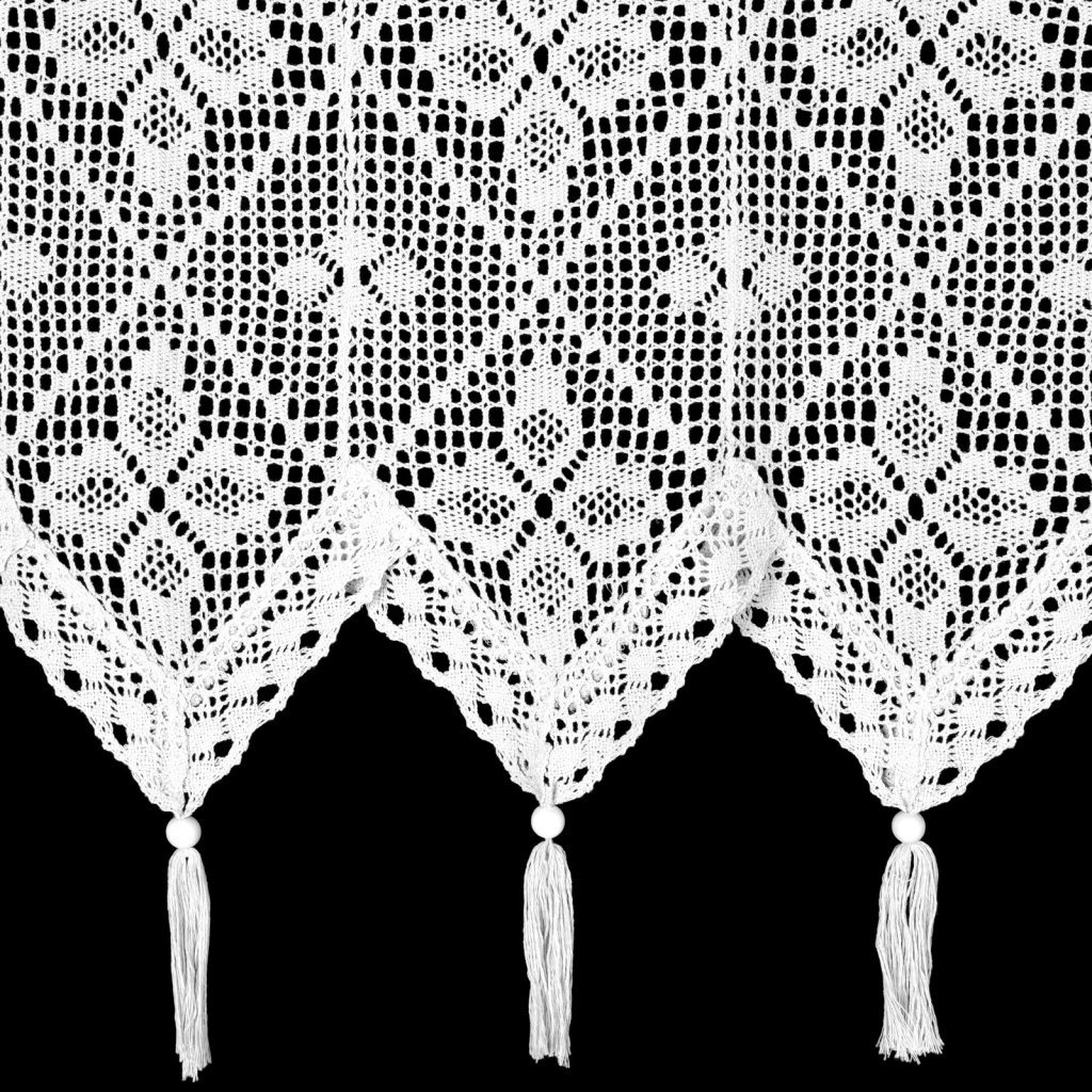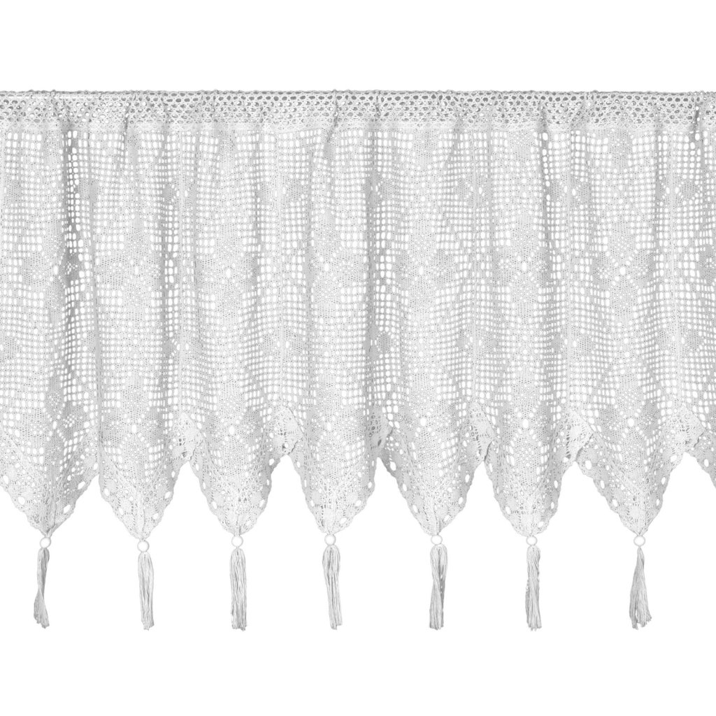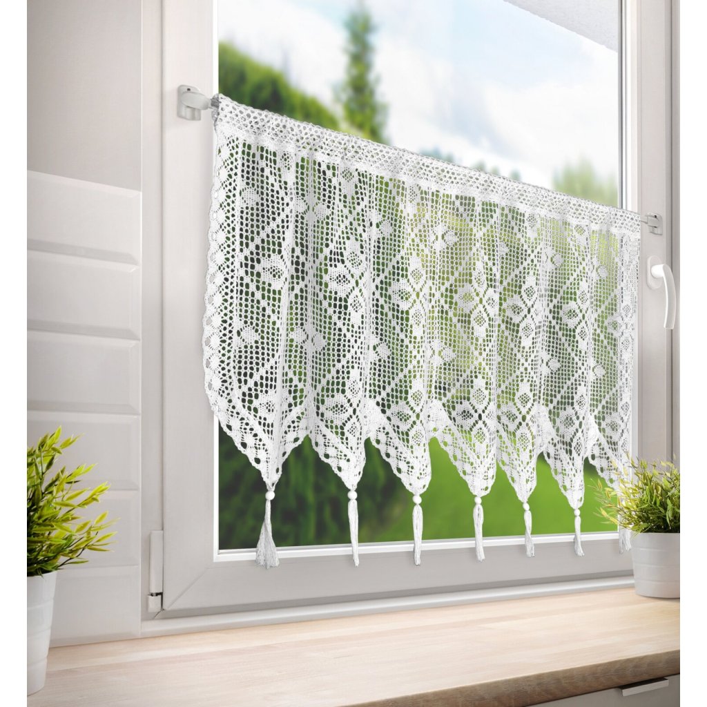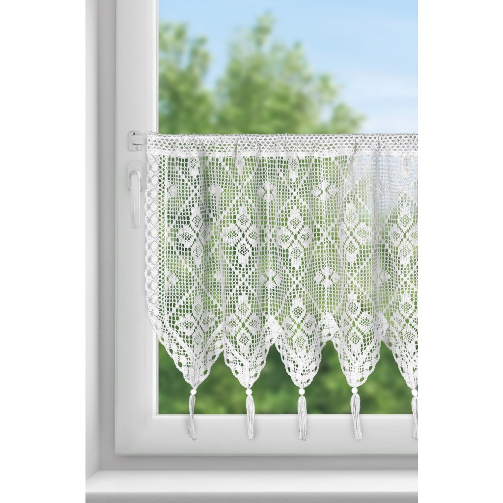 Záclonka s ažurovým květinovým vzorem, šířka: 150 cm, délka: 60 cm, barva: bílá, gramáž: 150 GSM, složení: 60% bavlna, 40% polyester.Doplňkové parametry