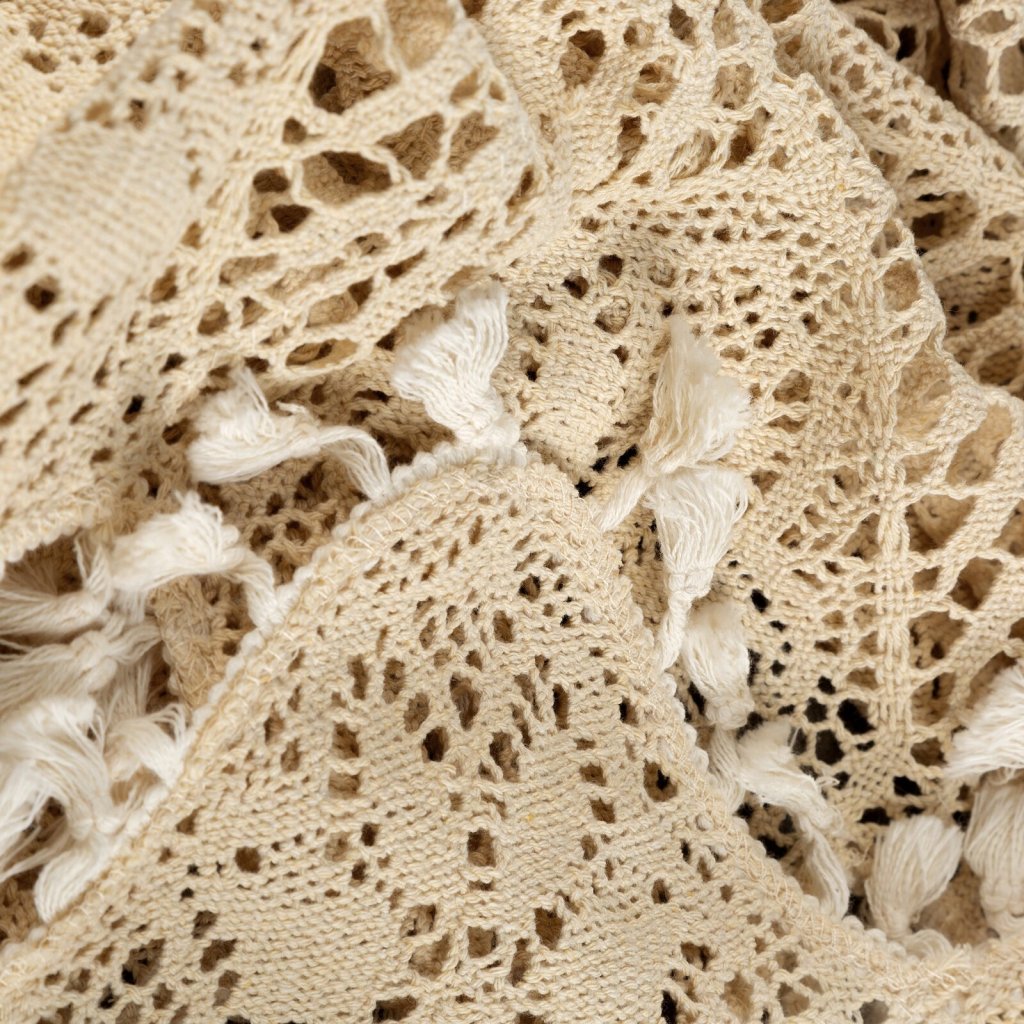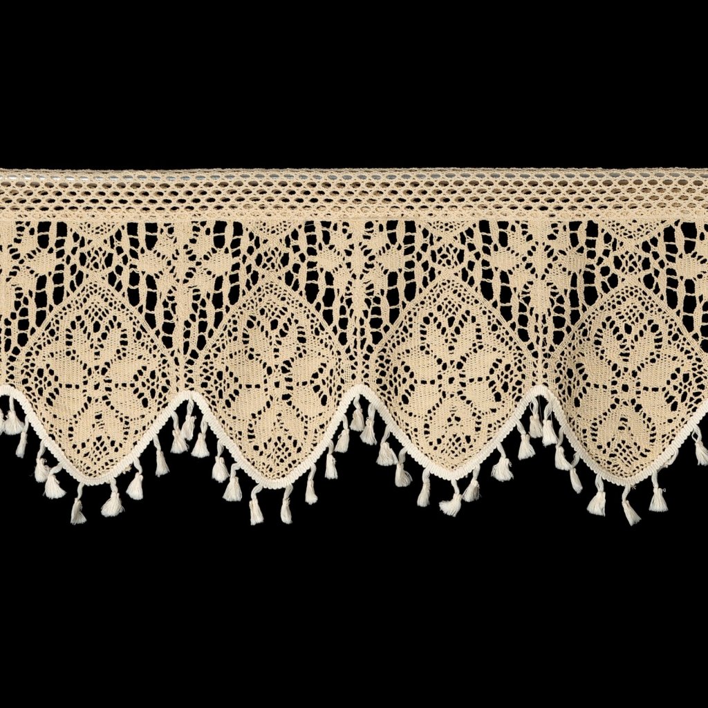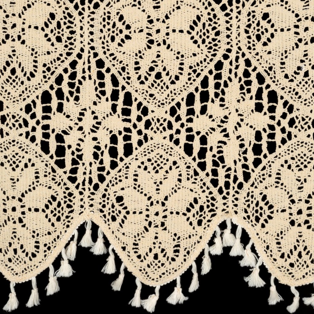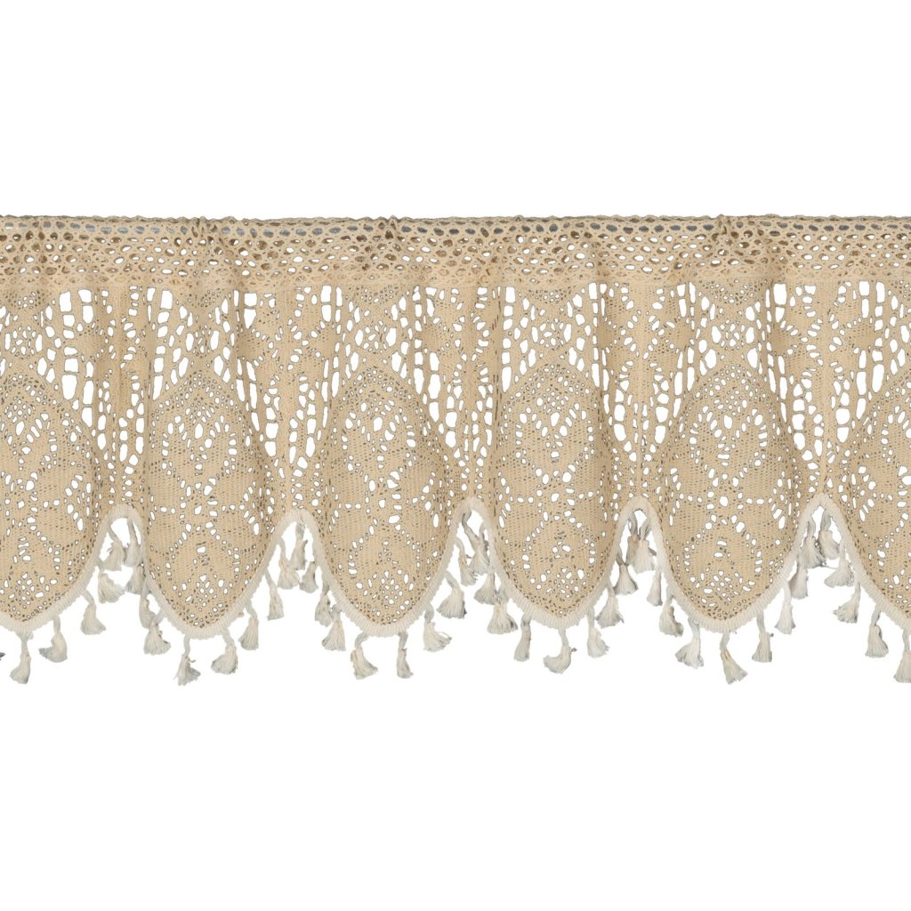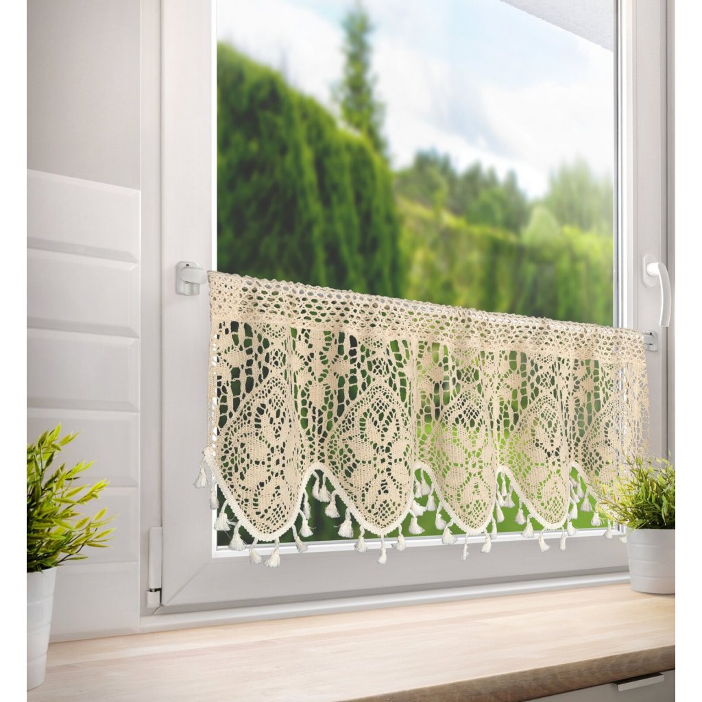 Záclona s ažurovým květinovým vzorem, šířka: 150 cm, délka: 30 cm, barva: světle béžová, gramáž: 150 GSM, složení: 60 % bavlna, 40 % polyester.Doplňkové parametry
