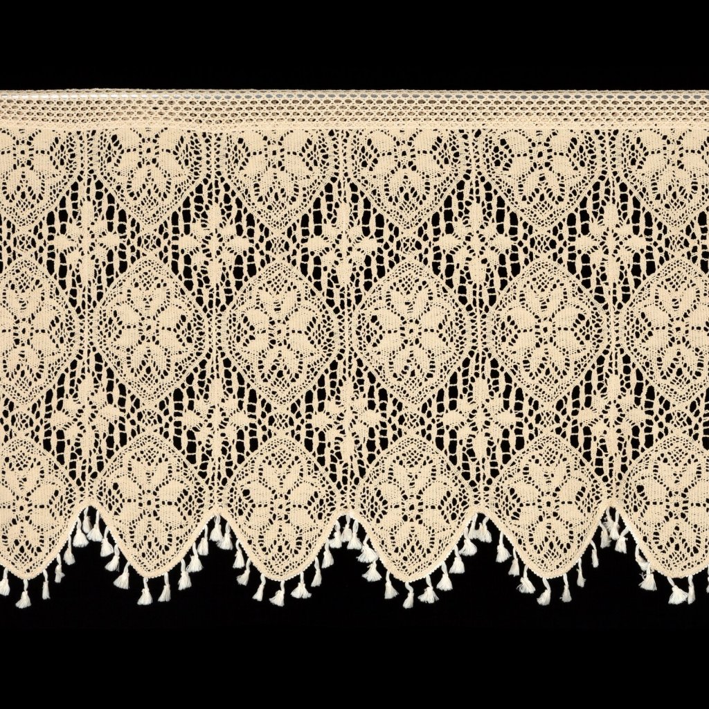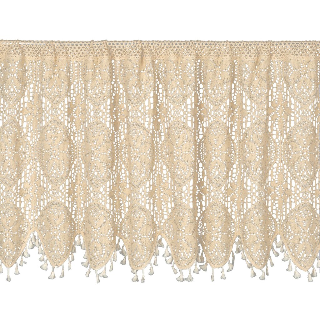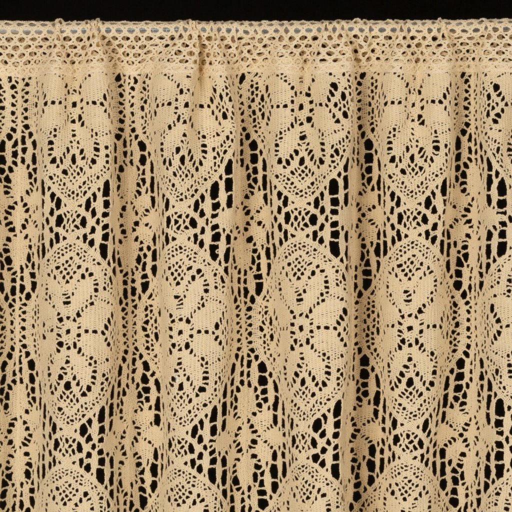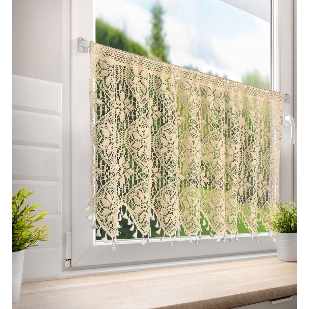 Záclona s ažurovým květinovým vzorem, šířka: 150 cm, délka: 60 cm, barva: světle béžová, gramáž: 150 GSM, složení: 60% bavlna, 40% polyester.Doplňkové parametry