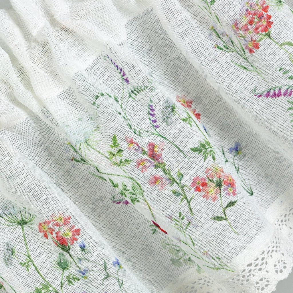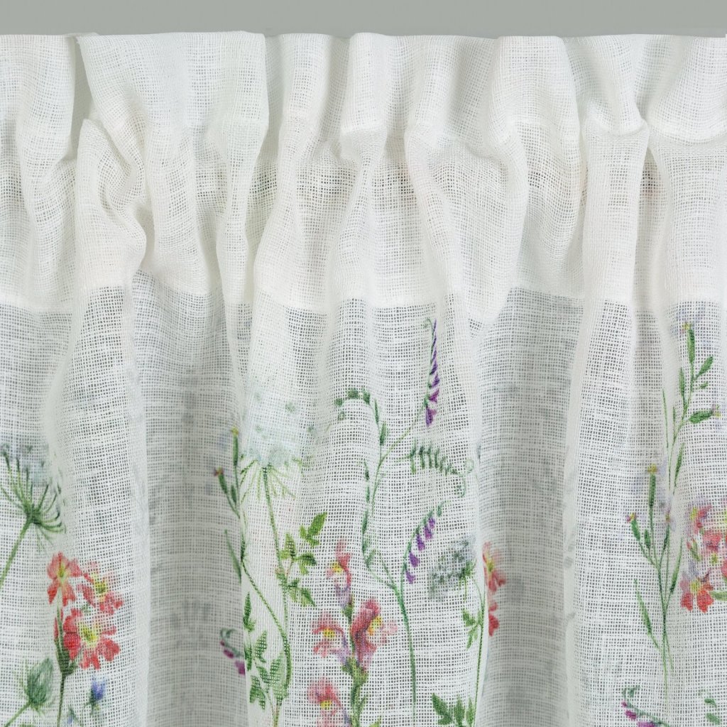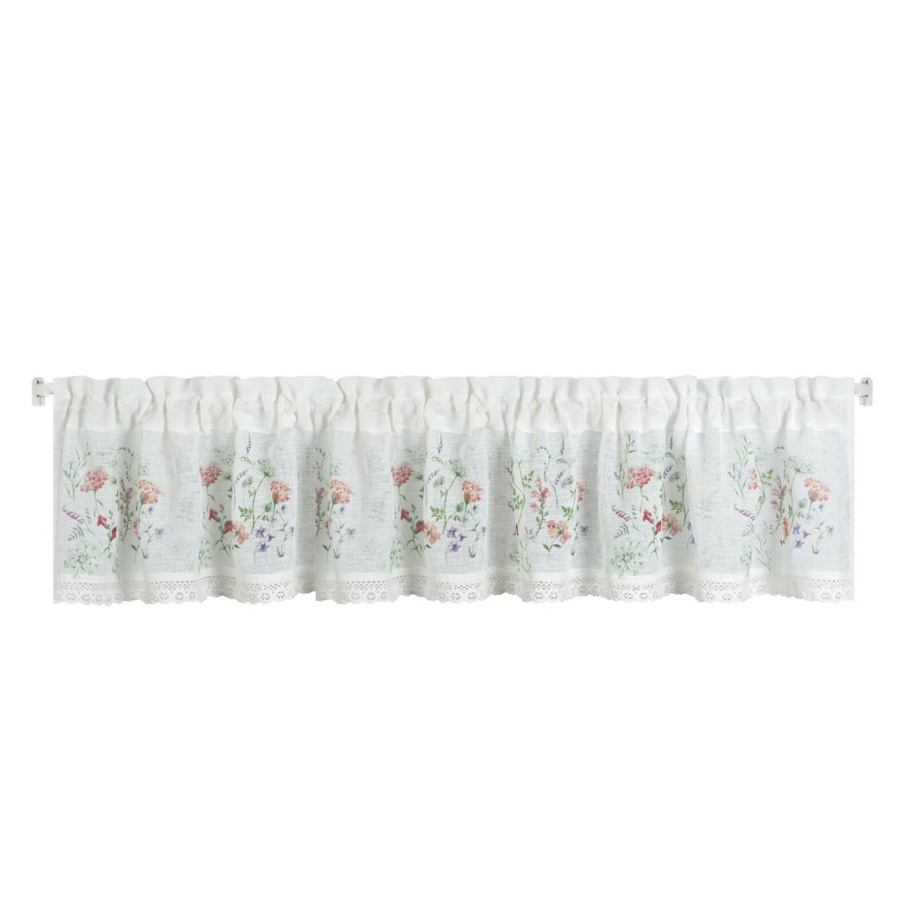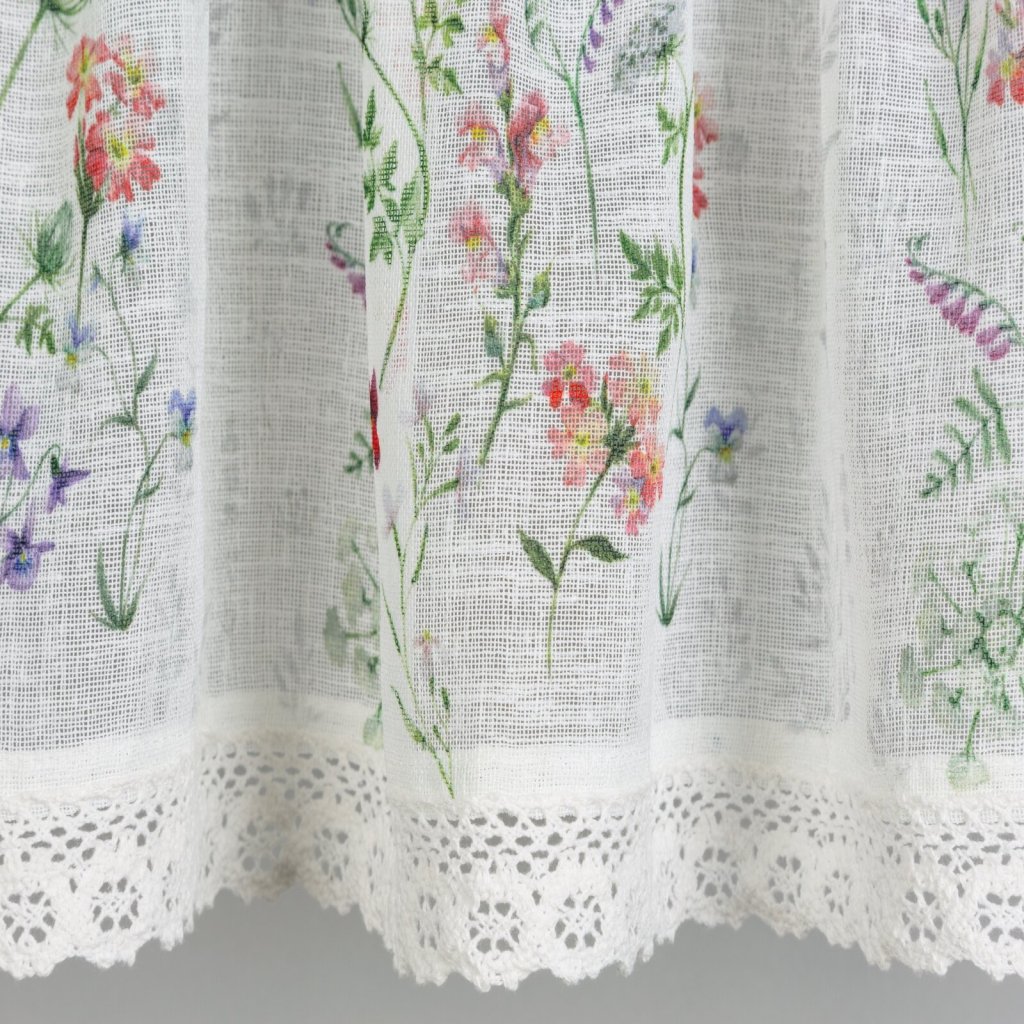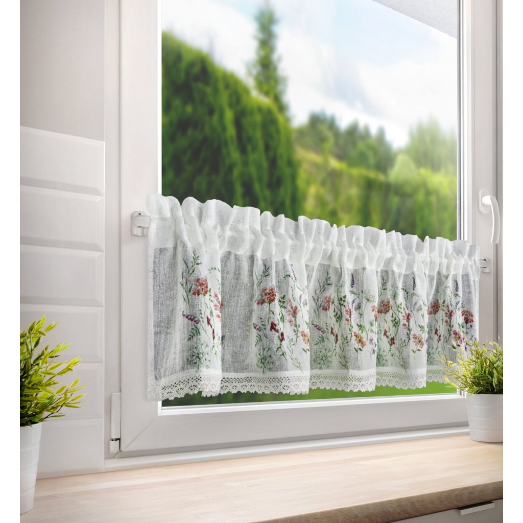 Záclona s potiskem zdobená krajkou. Šířka: 150 cm, délka: 30 cm, barva: vícebarevná, hmotnost: 165 GSM, složení: 100% polyester.Doplňkové parametry