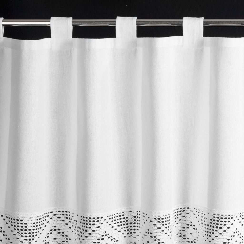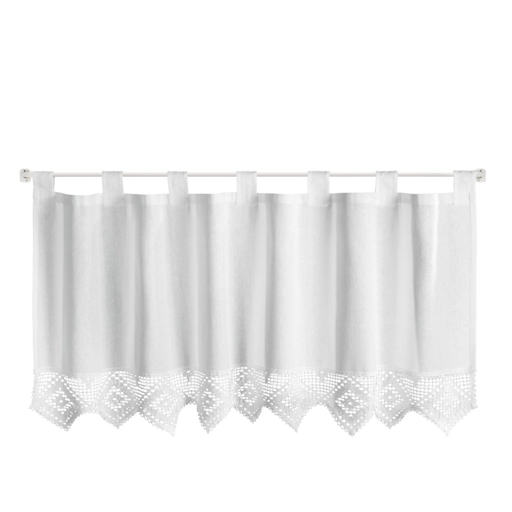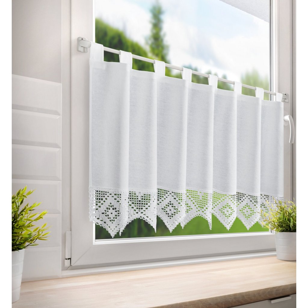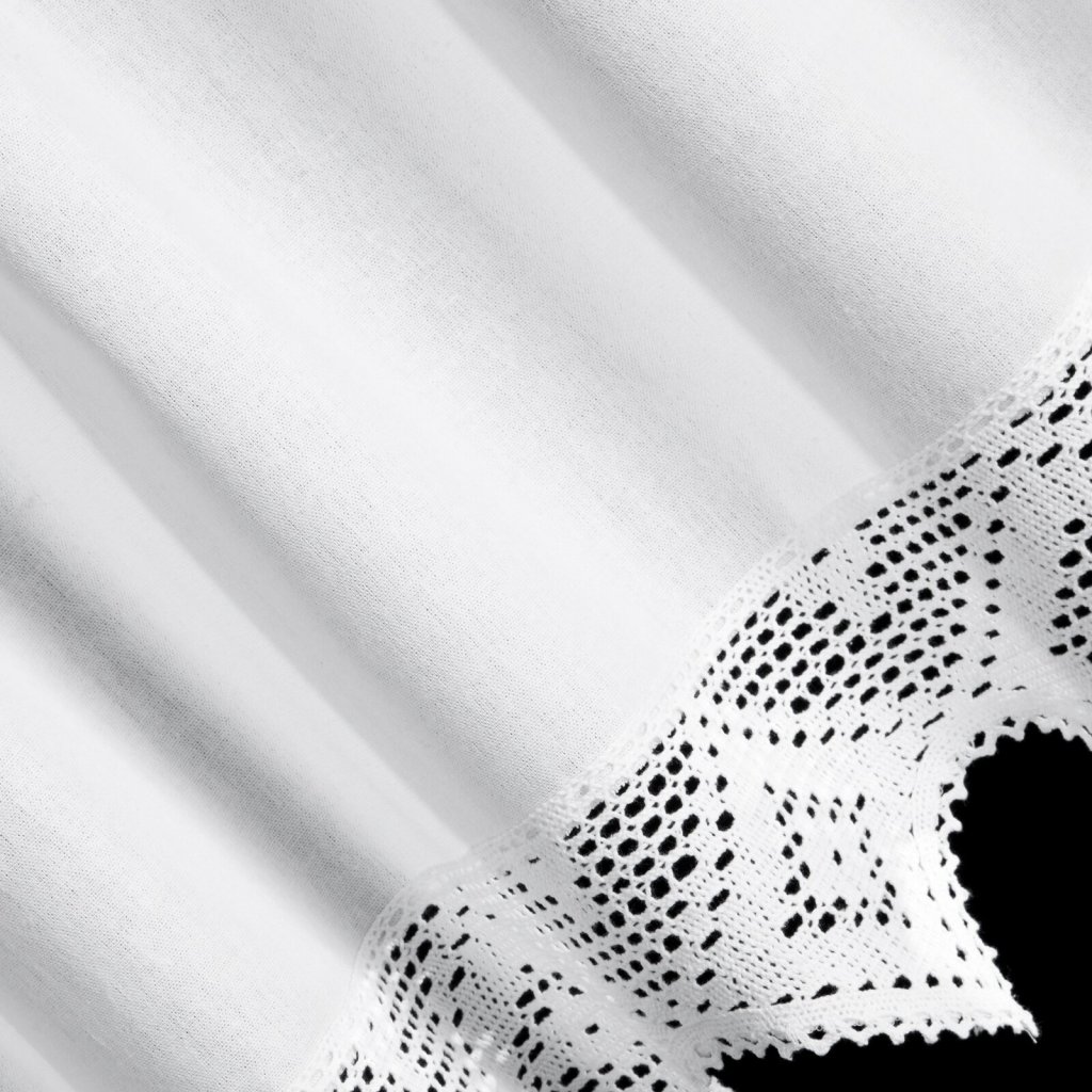 Záclona zdobená krajkou. Šířka: 150 cm, délka: 60 cm, barva: bílá, hmotnost: 180 GSM, složení: 60% bavlna 40% polyesterDoplňkové parametry