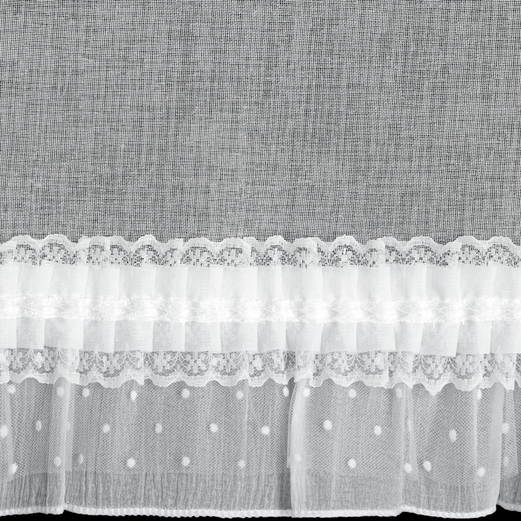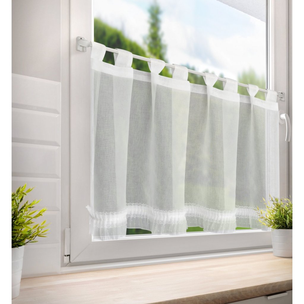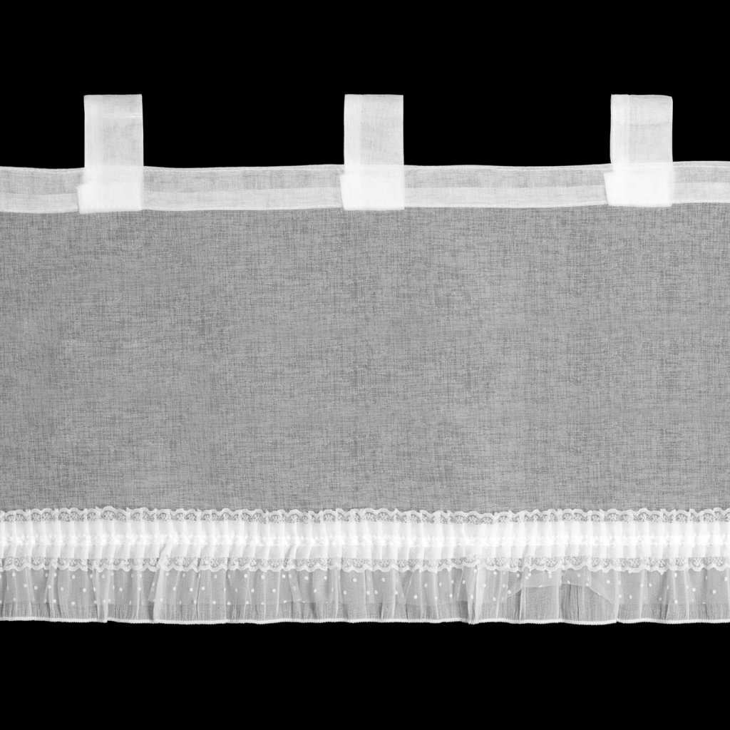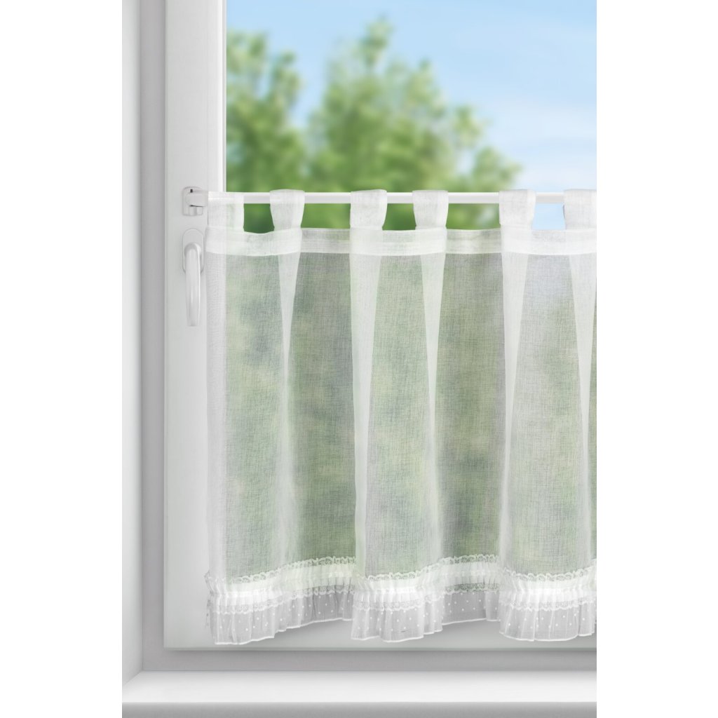 Hotová krátká záclona s ozdobným lemem, šířka: 60 cm, délka: 150 cm, barva: bílá, složení: 100% polyester.Doplňkové parametry