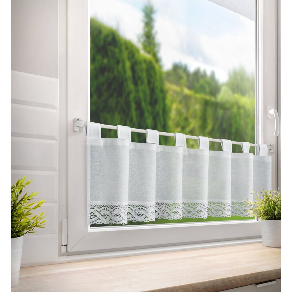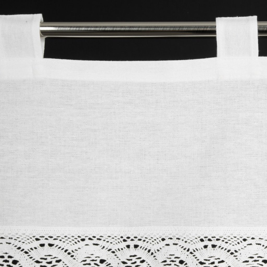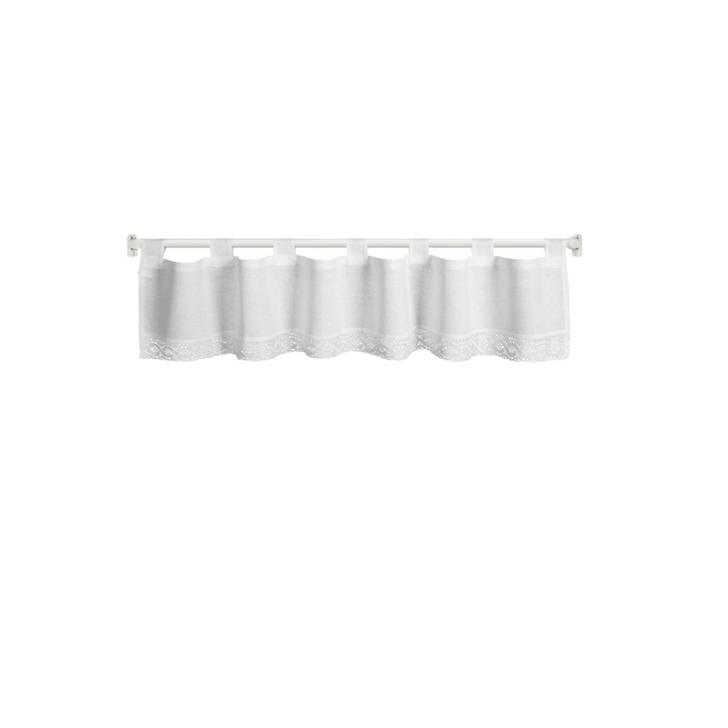 Záclona zdobená krajkou. Šířka: 150 cm, délka: 30 cm, barva: bílá, hmotnost: 180 GSM, složení: 60% bavlna 40% polyesterDoplňkové parametry