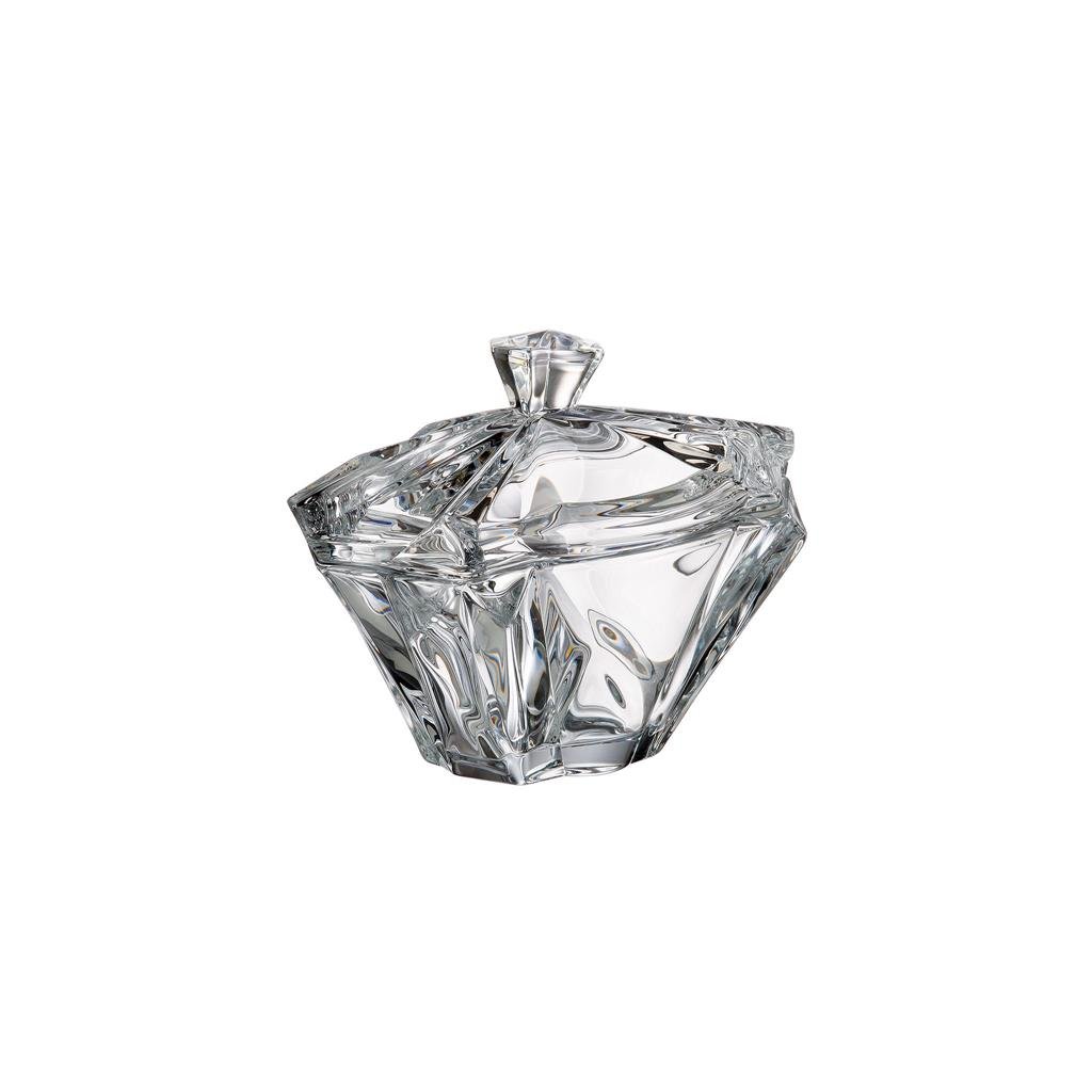 Křišťálová cukrářská mísa byla vyrobena z křišťálového skla nejvyšší kvality. Sklo je dokonale čiré a miska se na stole krásně vyjímá. Křišťálová miska je ideální na čokoládu, cukrovinky, sušenky; menší velikost lze použít také jako cukřenku.Křišťálová miska z řady ENIGMA