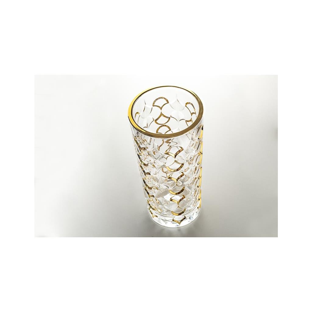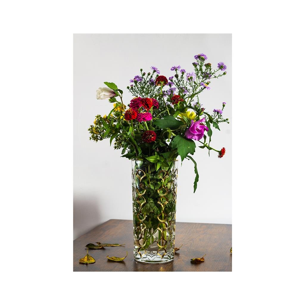 Křišťálová váza Arabesque Gold o výšce 280 mm je elegantním a univerzálním doplňkem, který vnese do interiéru nádech luxusu a estetické harmonie . výjimečný vzhled. Váza je ideální na aranžování živých i umělých květin, sezónních dekorací či větviček, přičemž vynikne jako stylová ozdoba stolu nebo součást interiérové výzdoby . Díky průměru 130 mm nabízí dostatečný prostor pro výrazné kompozice, které krásně vyniknou v moderním i klasickém prostředí.Doplňkové parametry