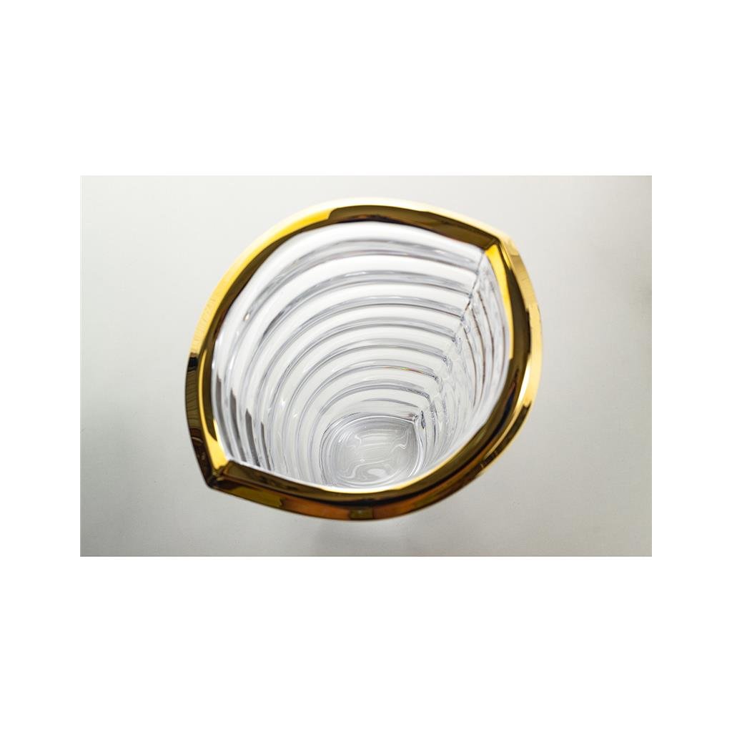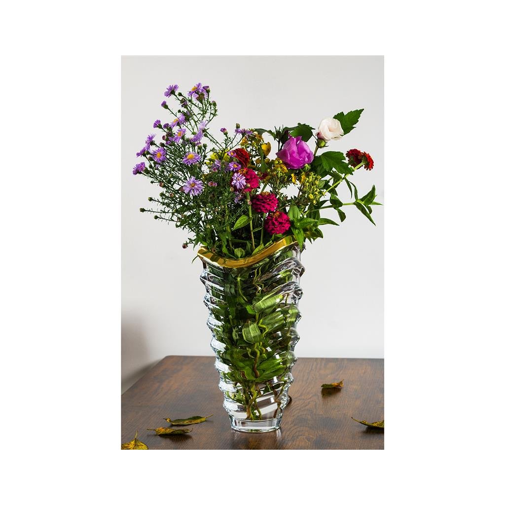 Křišťálová váza Wave Gold o výšce 34 cm je luxusním dekorativním doplňkem, který vynikne v klasických i moderních interiérech. Vyrobená z křišťálového skla vysoké kvality , které se vyznačuje výjimečnou průhledností a zářivým leskem, doplněná o zlaté provedení na okraji , které podtrhuje její noblesní charakter. Díky rozměrům 18,6 × 14,8 cm je váza ideální pro aranžování řezaných květin, ale působivě vynikne i jako samostatná dekorace . Elegantní tvar a proporce ji předurčují jako stylový dárek pro výjimečné příležitosti , stejně jako harmonický prvek v aranžacích interiérového designu.Doplňkové parametry