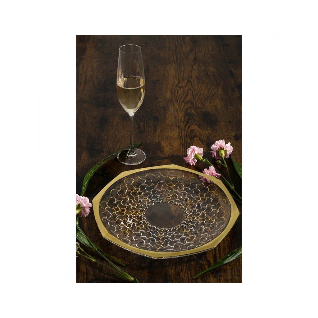 KŘISTÁLOVÝ PODNOS BOHEMIA PRESTIGE ARABESQUE GOLD 300MM