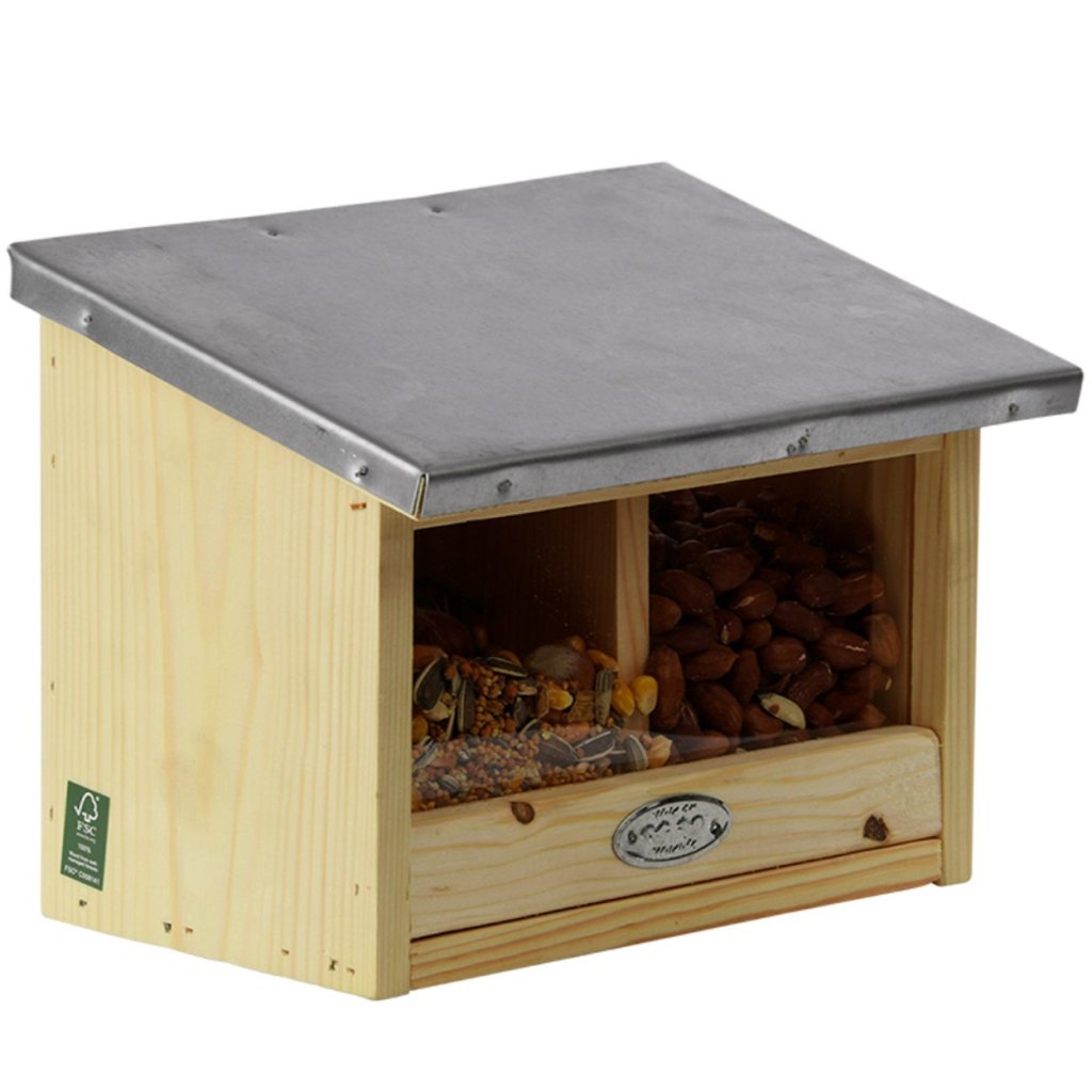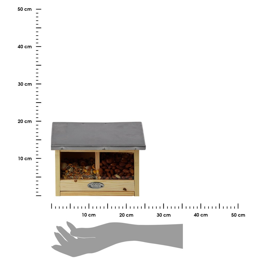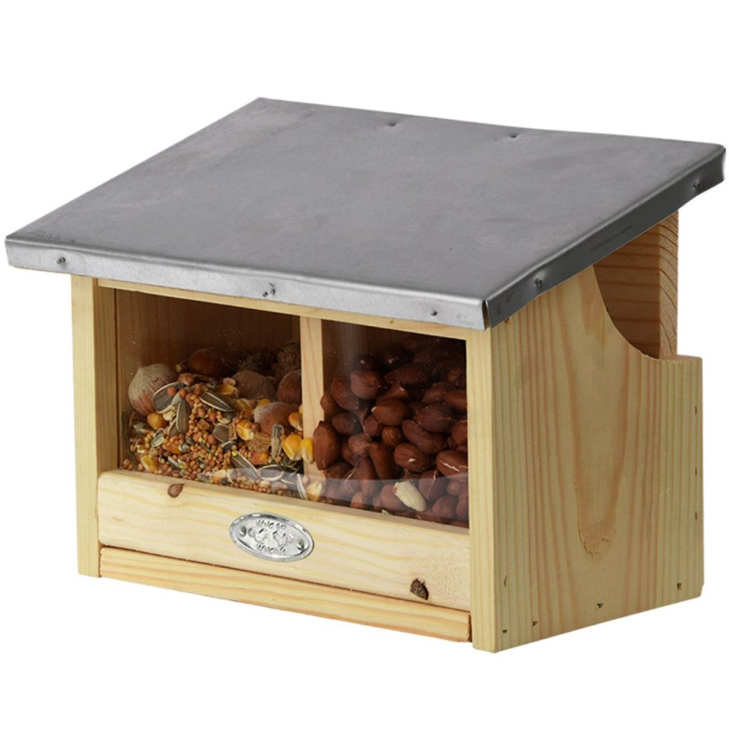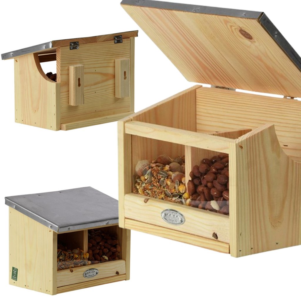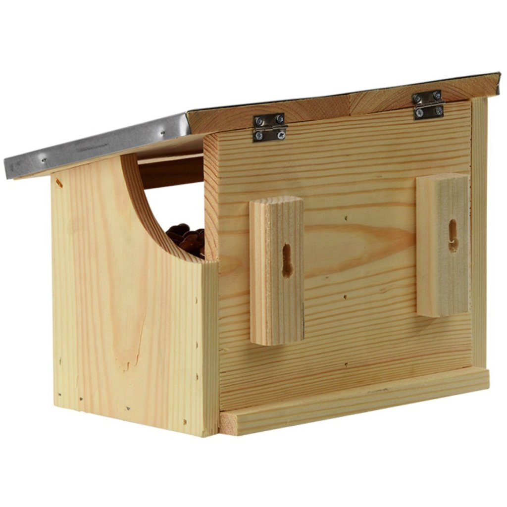 Dvoukomorové krmítko pro veverky je dokonalým řešením pro milovníky přírody, kteří chtějí podpořit své místní veverky tím, že jim poskytnou bezpečný a snadno dostupný zdroj potravy. Vyrobeno z kvalitního borovicového dřeva, má průhlednou plexisklovou stěnu, díky které můžete snadno kontrolovat hladinu krmiva uvnitř.Pevný kryt chrání krmivo před deštěm, sněhem a jinými nepříznivými povětrnostními podmínkami a zároveň umožňuje veverkám snadný přístup dovnitř.