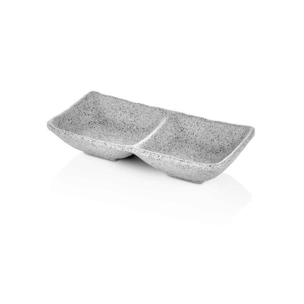 Dvojitá granitová mísa z melaminu v šedé barvě.Rozměry: 17,5 cm x 8,7 cm