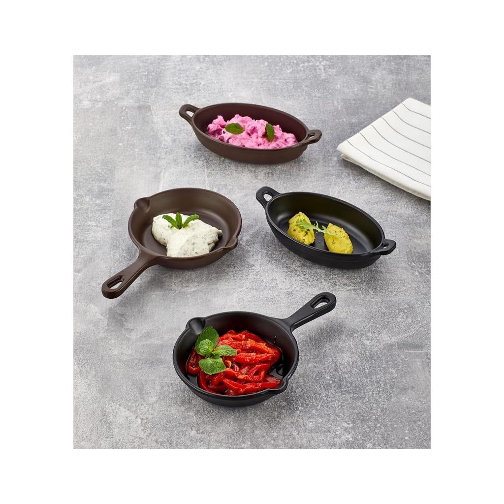 Pánev Terra z melaminu v tmavě hnědé barvě.Rozměry: 26 cm x 15 cm