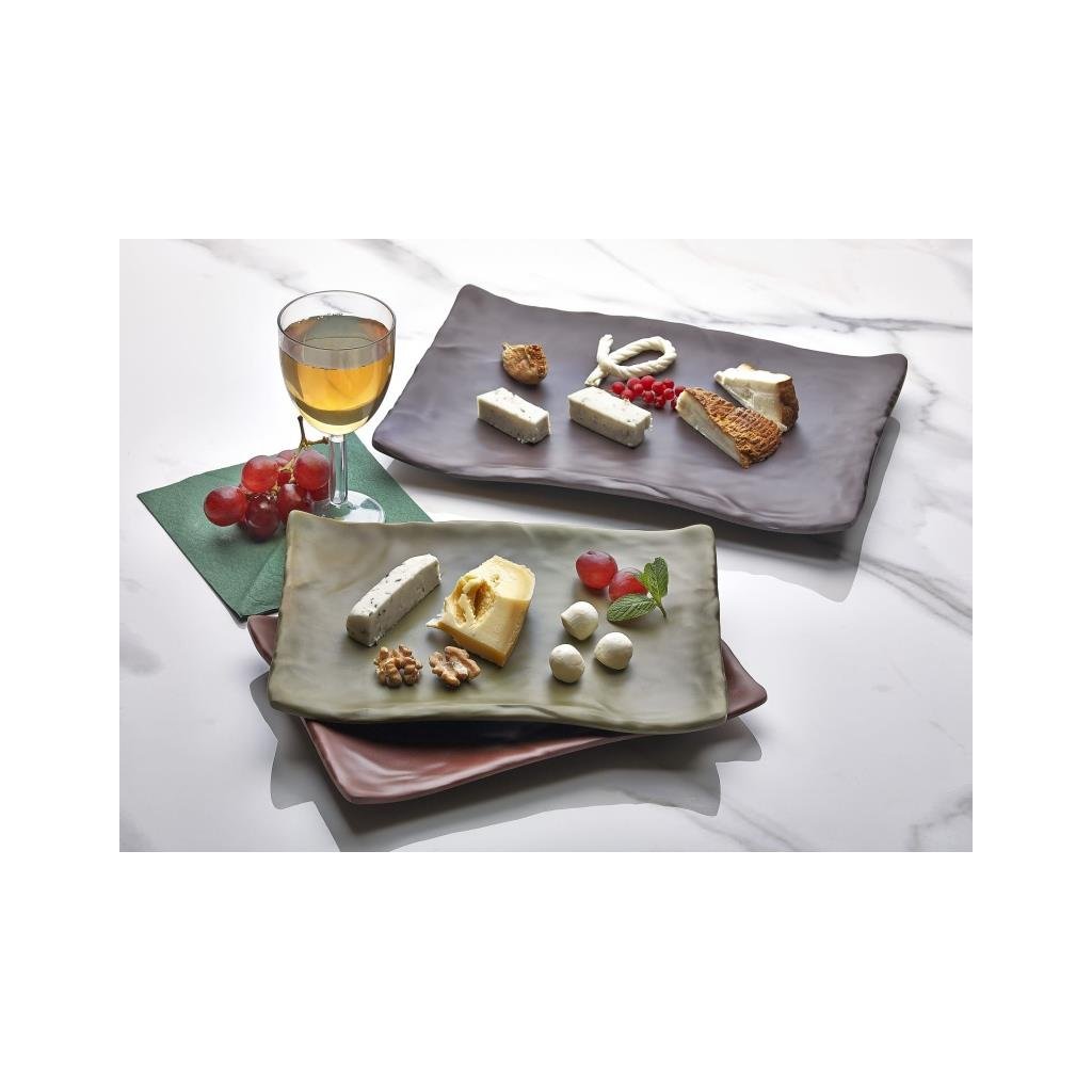 Obdélníkový talíř Terra z melaminu v tmavě hnědé barvě.Rozměry: 19 cm x 13,5 cm