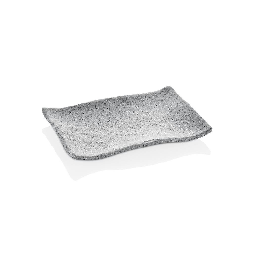 Obdélníkový melaminový talíř v šedé barvě.Rozměry: 27,7 cm x 19,2 cm