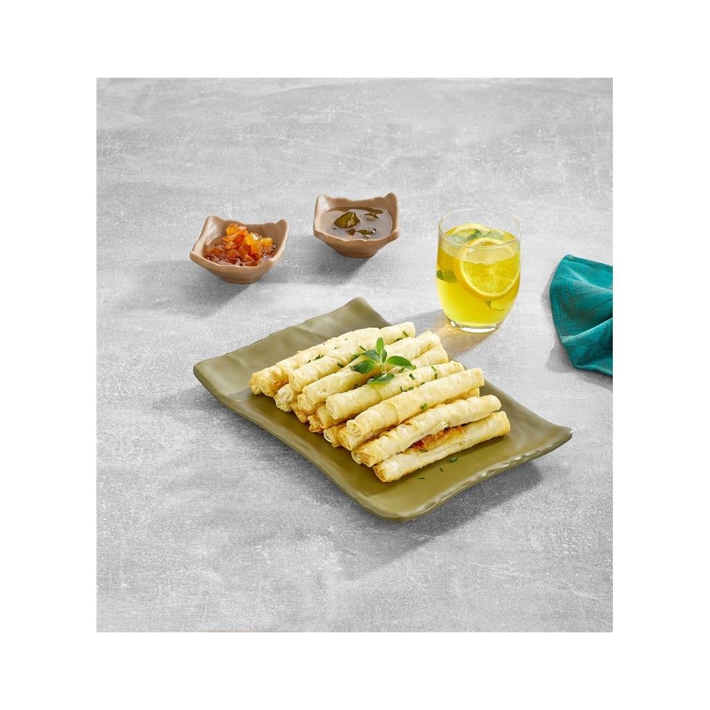 Obdélníkový talíř Terra z melaminu v barvě khaki.Rozměry: 34,1 cm x 23,6 cm
