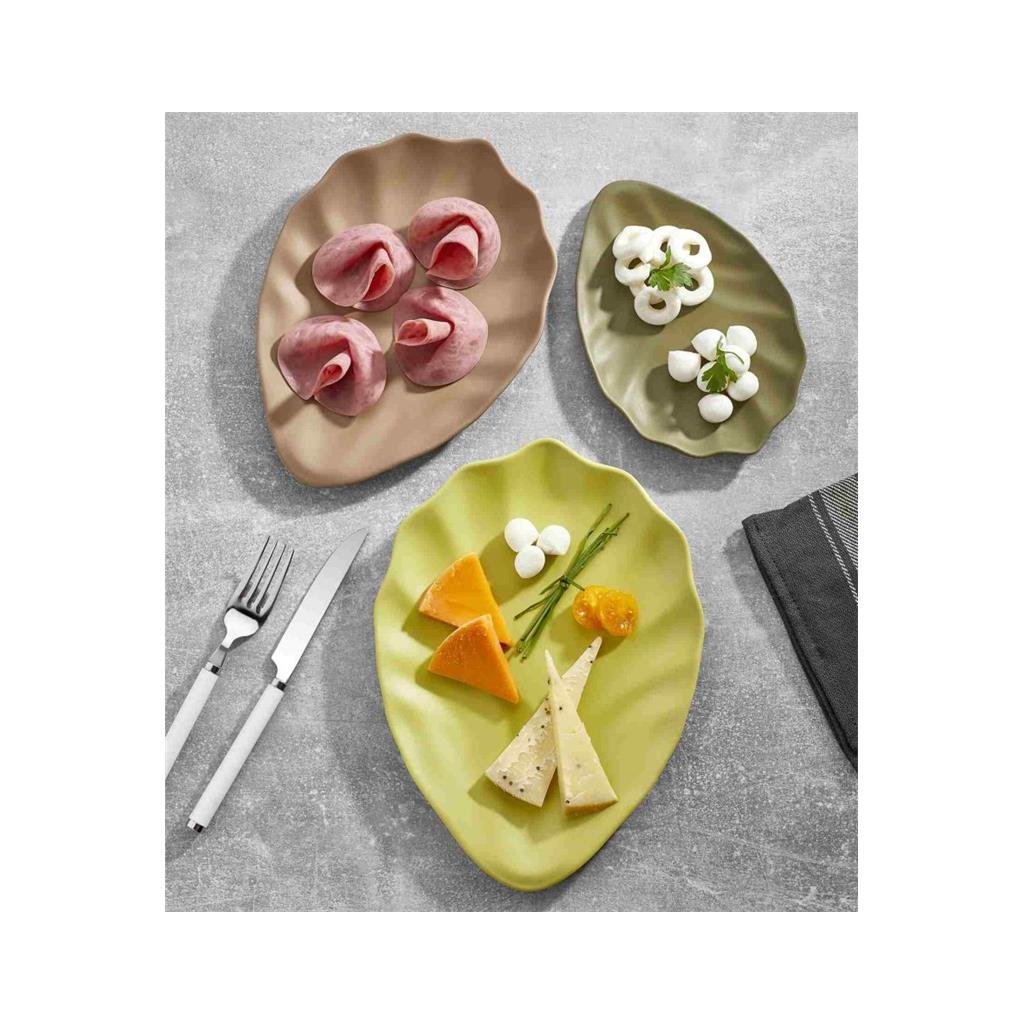 Talíř Terra Vinea ve tvaru listu z melaminu v zelené barvě.Rozměry: 34 cm x 25 cm