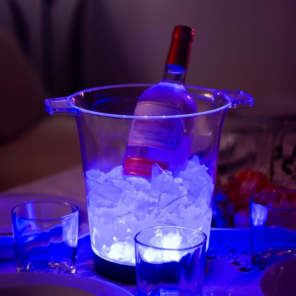 LED kbelík na led s RGB podsvícením je stylovým a zároveň praktickým doplňkem na večírky, oslavy či posezení s přáteli. Díky vícebarevnému osvětlení RGB vytváří atraktivní světelnou atmosféru, která zvýrazní každý nápoj – od sektu až po osvěžující limonády, pokud je kbelík naplněn ledem.