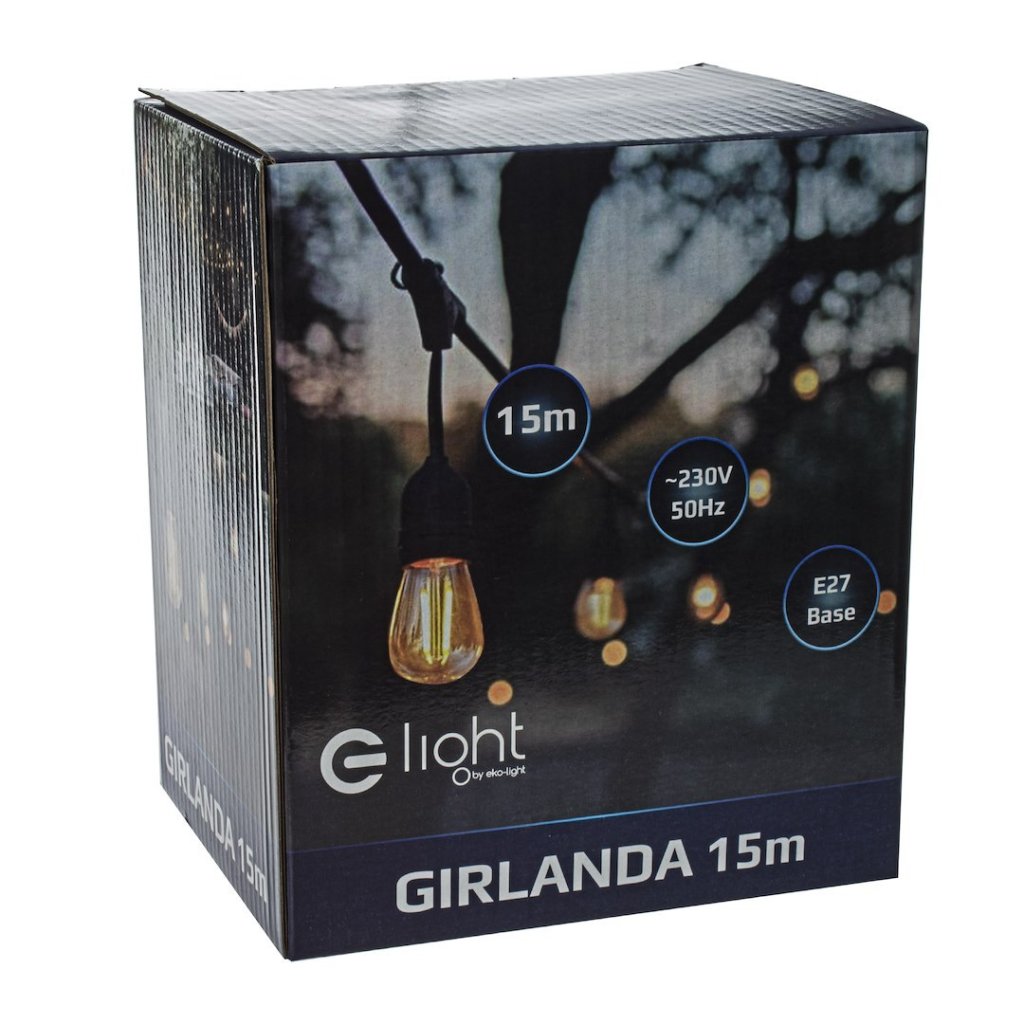 LED světelný řetěz Basic1 o délce 15 metrů je vybaven 15 objímkami typu E27 , které jsou připraveny na vyměnitelné LED žárovky (žárovky nejsou součástí balení). Řetěz má šířku 35 mm, výšku 60 mm a hmotnost 3 kg. Je vyrobena z odolného plastu v černém univerzálním provedení, které se snadno přizpůsobí různým stylům prostoru.