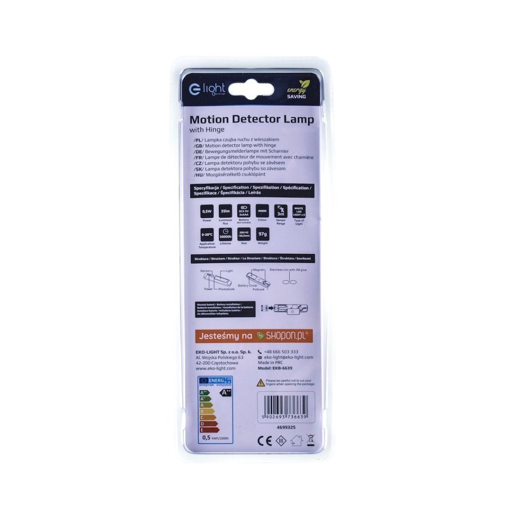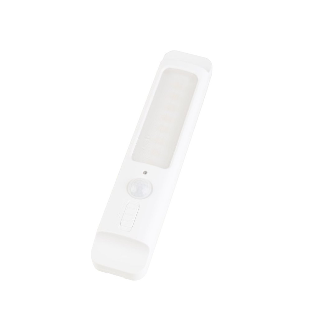 LED svítilna do skříňky s pohybovým senzorem a praktickým věšákem je mimořádně užitečný doplněk do každé domácnosti. Model je vyroben z kvalitního PVC materiálu v bílé barvě a vyznačuje se kompaktními rozměry - šířka 40 mm, výška 200 mm a hloubka 35 mm. Svítilna vyzařuje neutrální bílé světlo s barevnou teplotou 4000 K a světelným tokem 35 lm. Spotřeba je pouhých 0,5 W, což zajišťuje energetickou úspornost a dlouhou výdrž při napájení bateriemi.