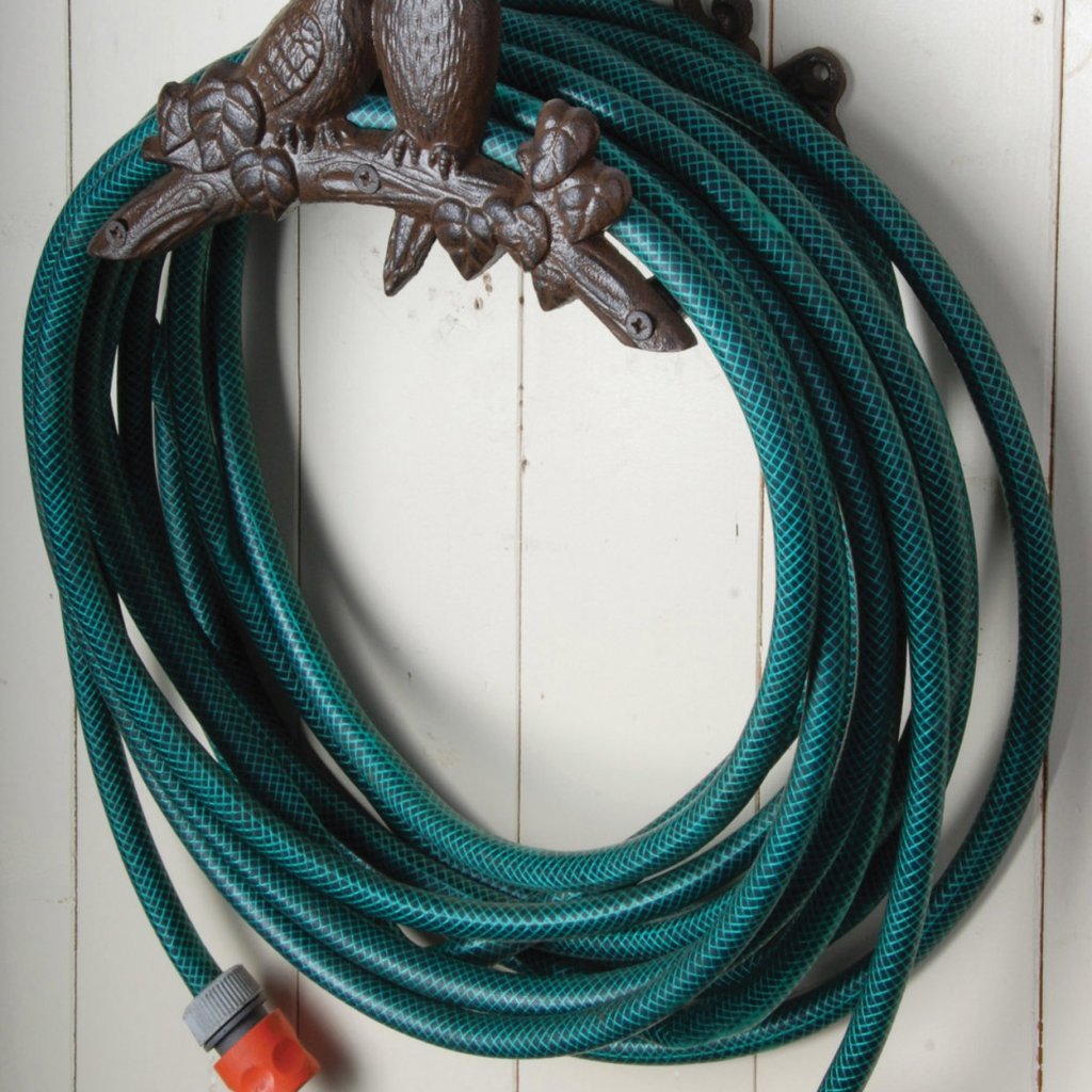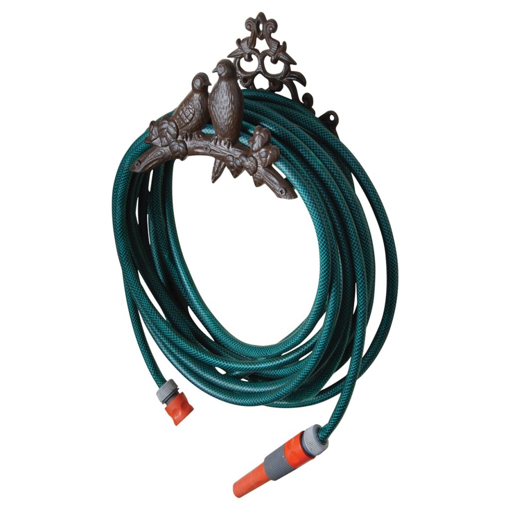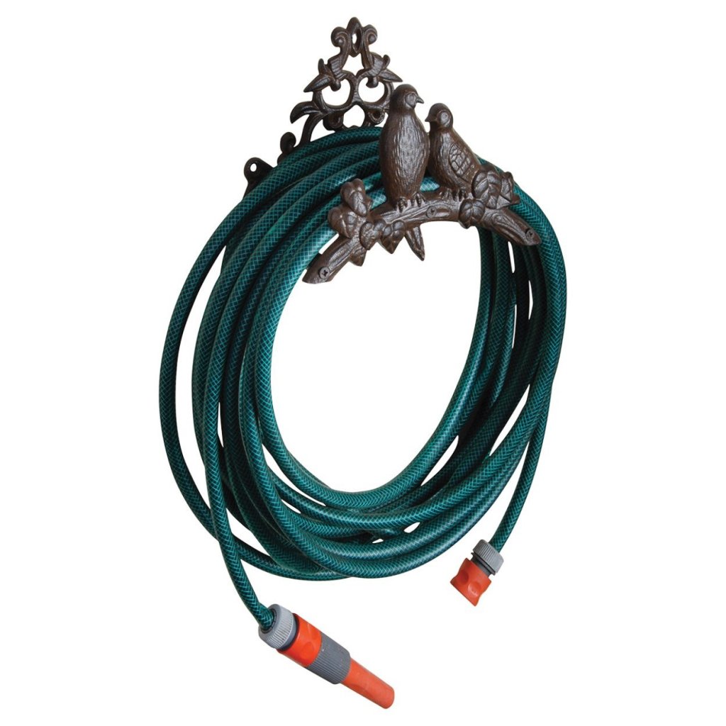 Litinový nástěnný držák na zahradní hadici Birds, 25x18 cm, hnědá