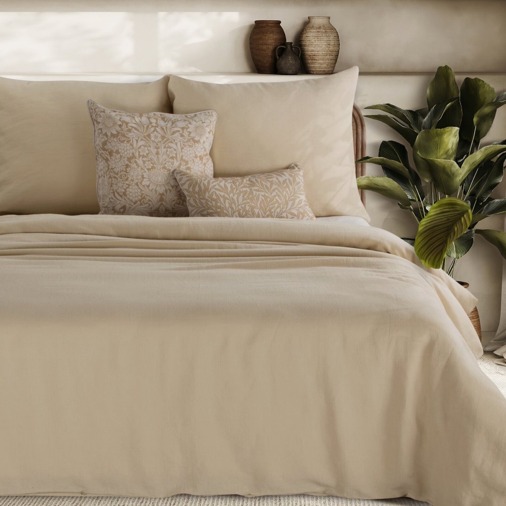 Povlečení LINEN přináší pohodlí a jednobarevný design v jednom. Lněné povlečení je skvělou volbou, protože má několik výhod. Jsou prodyšná, skvěle odvádějí vlhkost a regulují teplotu, takže se skvěle hodí na léto i zimu. Len je přírodní materiál, je ekologický, antibakteriální a vhodný pro citlivou pokožku. Jsou odolné, čím více se perou, tím jsou měkčí a pohodlnější. Šířka: 220 cm, délka: 200 cm, povlak na polštář 2 ks 70 x 80 cm, barva: béžová, gramáž: 140 GSM, složení: 65 % len, 35 % bavlna.Doplňkové parametry