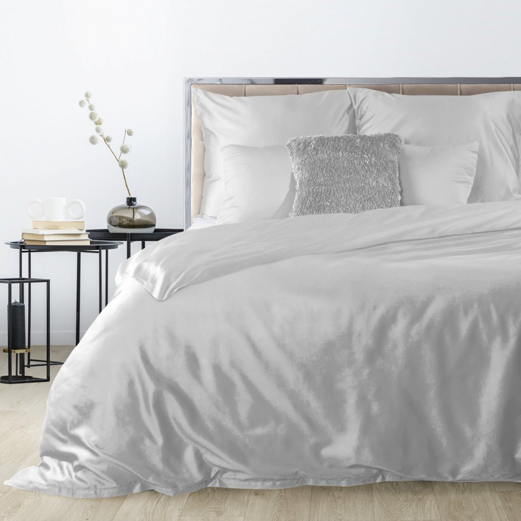 Hladké povlečení z kvalitního bavlněného saténu. Šířka: 160 cm, délka: 200 cm, 2ks 70X80 cm, barva: světle šedá, gramáž: 125 GSM, složení: 100% bavlněný satén.Doplňkové parametry