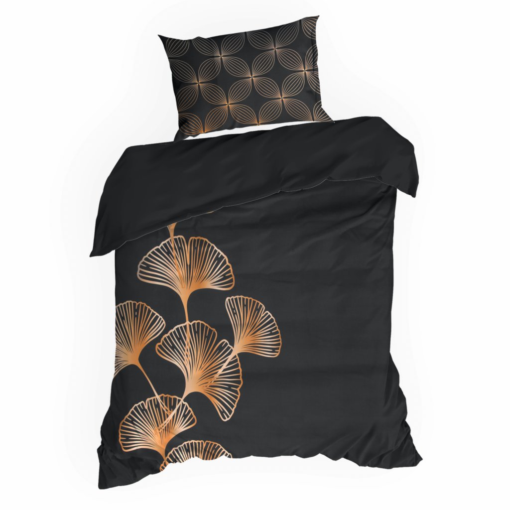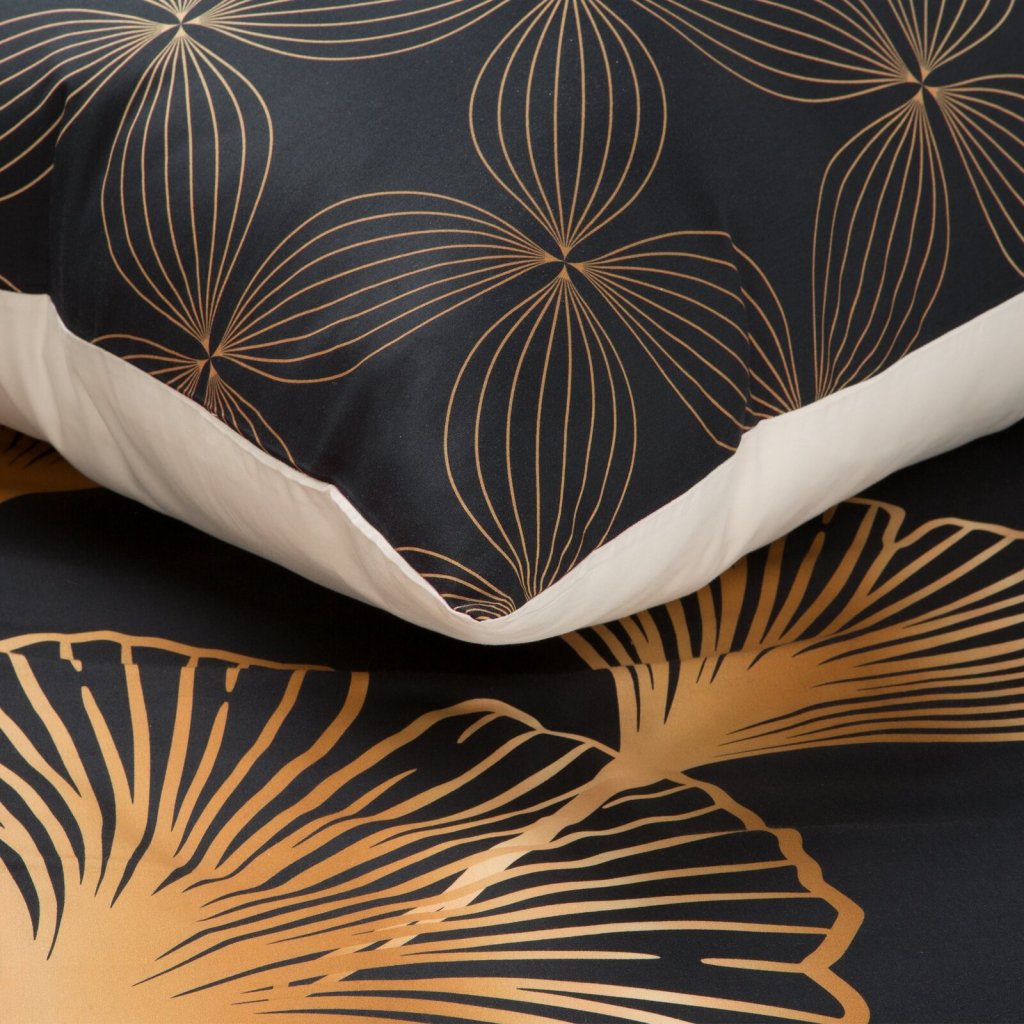 Makosaténové povlečení s potiskem z limitované kolekce VICTORIA 10. Šířka: 160 cm, délka: 200 cm, povlaky na polštář: 2ks 70x80 cm, barva: černá, gramáž: 125 GSM, složení: 100% makosatinová bavlna.Doplňkové parametry