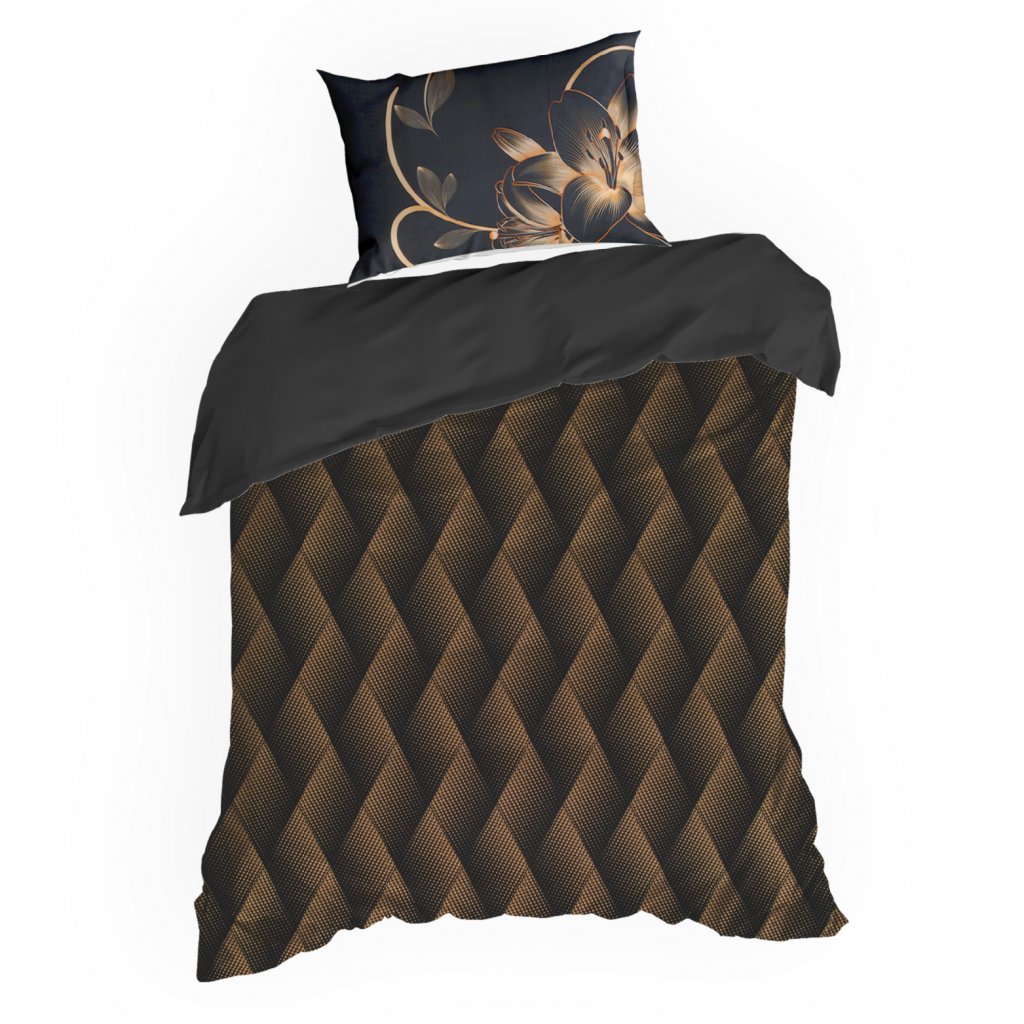 Makosaténové povlečení s potiskem z limitované kolekce VICTORIA 12. Šířka: 160 cm, délka: 200 cm, povlaky na polštář: 2ks 70x80 cm, barva: černá, gramáž: 125 GSM, složení: 100% makosatinová bavlna.Doplňkové parametry