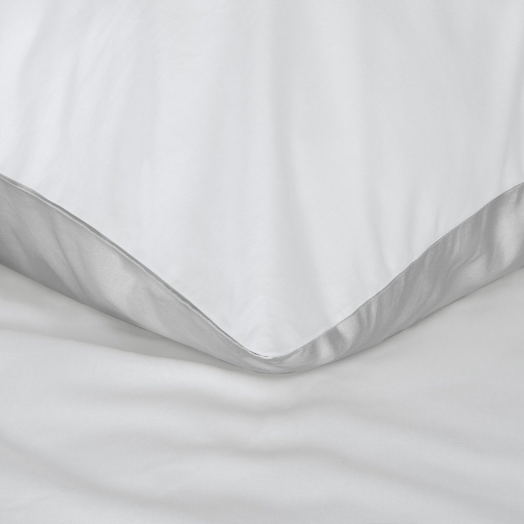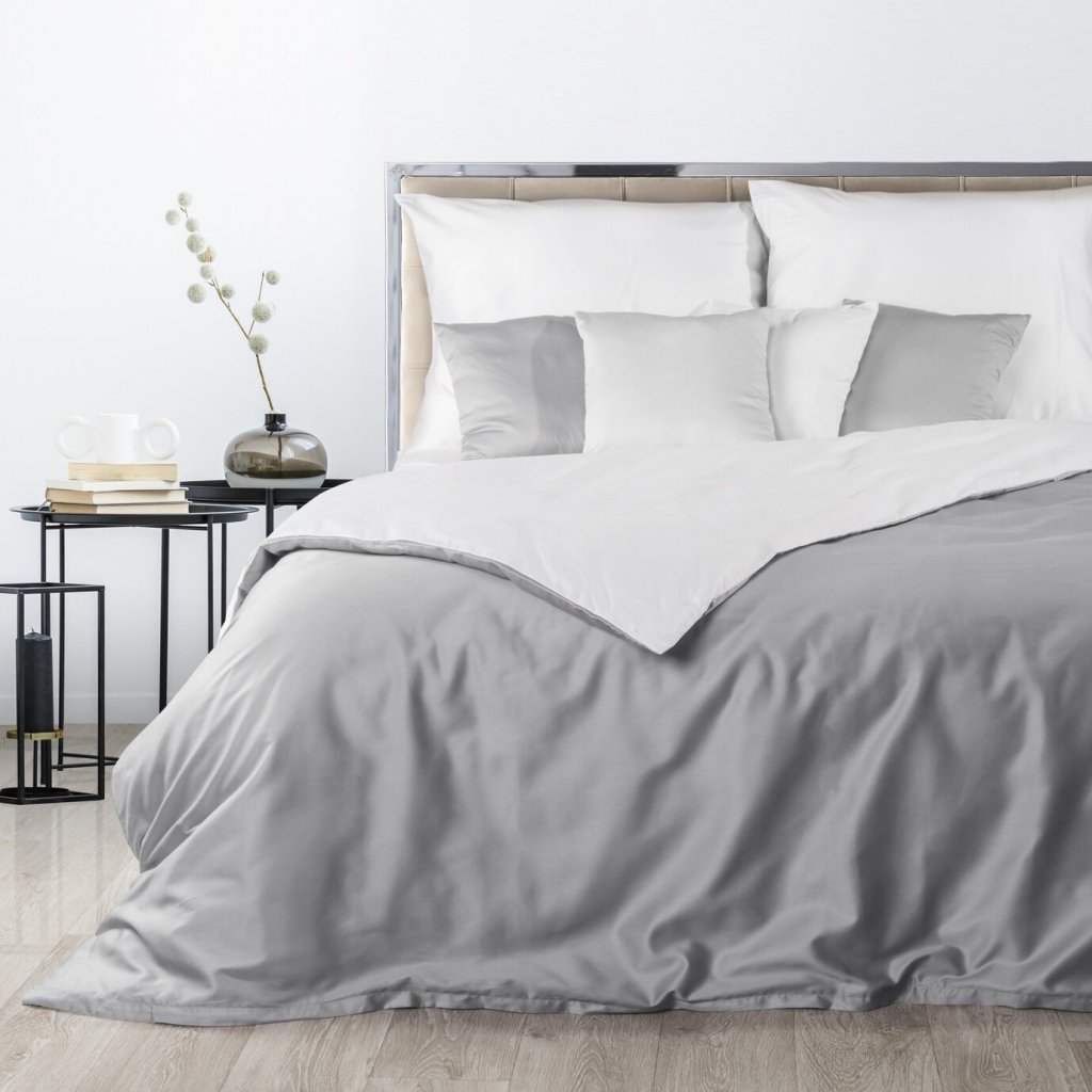 Ložní prádlo z bavlněného saténu se zapínáním na zip. Šířka: 220 cm, délka: 200 cm, 2 ks 70X80 cm, barva: bílá/šedá, gramáž: 125 GSM, složení: 100% bavlněný satén.Doplňkové parametry