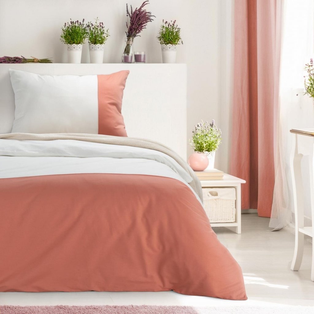 Dvoubarevné bavlněné ložní prádlo zdobené jemným lemem. Šířka: 140 cm, délka: 200 cm, 1ks 70X80 cm, barva: bílá/cihla, gramáž: 110 GSM, složení: 100% bavlna.Doplňkové parametry