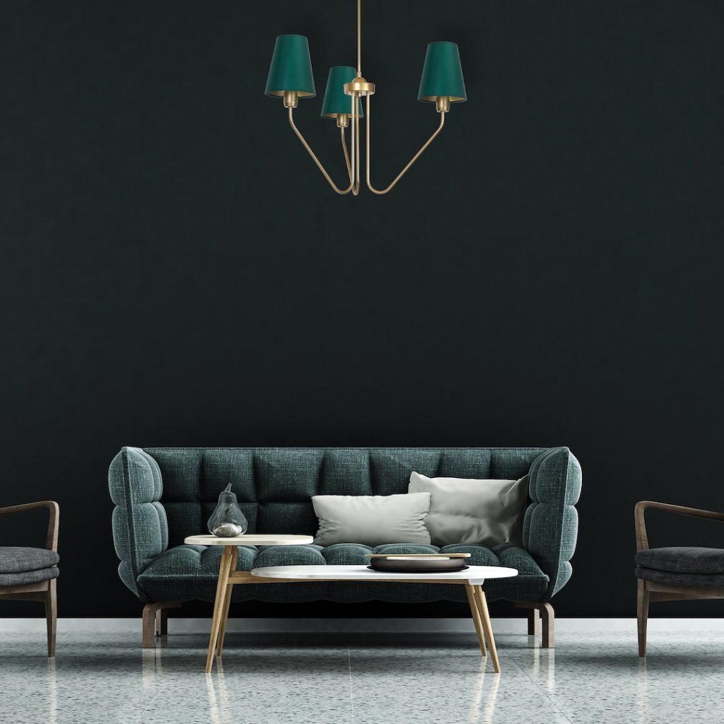 Lustr Victoria se třemi stínítky v zeleném odstínu je kombinací klasické elegance a jemného designového experimentu . Textilní stínítka s mírně zúženým tvarem jsou umístěna na jemně zakřivených kovových ramenech s mosaznou povrchovou úpravou, která dodávají celému svítidlu vznešený a nadčasový vzhled .