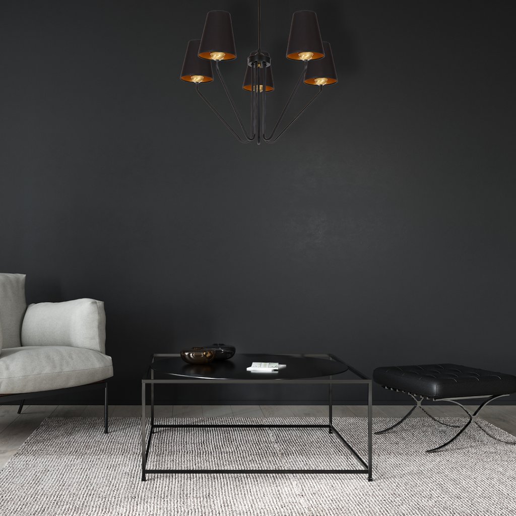 Lustr Victoria, 5x černé textilní stínítko, b/g