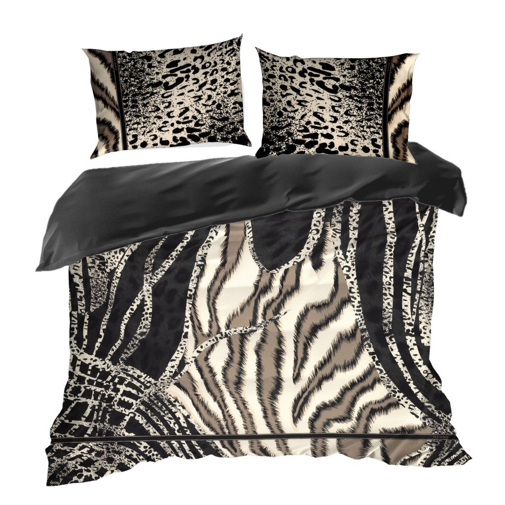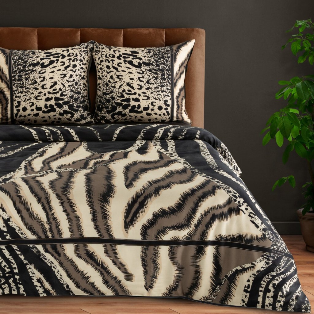 Ložní souprava je vyrobena z nejkvalitnějšího bavlněného saténu, který se vyznačuje jemnou měkkostí, hedvábným leskem a mimořádnou odolností. Povlečení je složeno ze dvou látek - vrchní stranu zdobí panelový potisk s designovým vzorem a spodní hladká černá látka, která vytváří stylovou a výraznou kompozici. Moderní a odolná technologie barvení zajišťuje, že povlečení neztrácí na intenzitě a barevnosti ani po mnoha vypráních, povlečení má v sobě systém zipů. Šířka: 140 cm, délka: 200 cm, povlak na polštář 1 ks 70x80 cm, barva: vícebarevná, gramáž: 125 GSM, složení: 100% bavlna.Doplňkové parametry