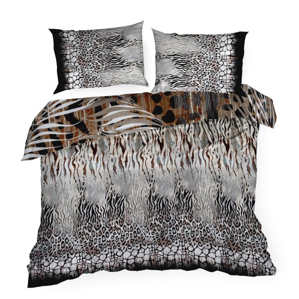 Ložní souprava je vyrobena z nejkvalitnějšího bavlněného saténu, který se vyznačuje jemnou měkkostí, hedvábným leskem a mimořádnou odolností. Povlečení se skládá ze dvou druhů látek s různými panelovými potisky. Moderní a odolná technologie barvení zajišťuje, že povlečení neztrácí na intenzitě a barevnosti ani po mnoha vypráních, povlečení má v sobě systém zipů. Šířka: 160 cm, délka: 200 cm, povlak na polštář 2 ks 70x80 cm, barva: vícebarevná, gramáž: 125 GSM, složení: 100% bavlna.Doplňkové parametry