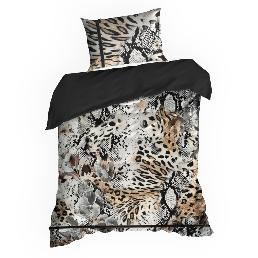 Ložní souprava je vyrobena z nejkvalitnějšího bavlněného saténu, který se vyznačuje jemnou měkkostí, hedvábným leskem a mimořádnou odolností. Povlečení je složeno ze dvou látek - vrchní stranu zdobí panelový potisk s designovým vzorem a spodní hladká černá látka, která vytváří stylovou a výraznou kompozici. Moderní a odolná technologie barvení zajišťuje, že povlečení neztrácí na intenzitě a barevnosti ani po mnoha vypráních, povlečení má v sobě systém zipů. Šířka: 140 cm, délka: 200 cm, povlak na polštář 1 ks 70x80 cm, barva: vícebarevná, gramáž: 125 GSM, složení: 100% bavlna.Doplňkové parametry