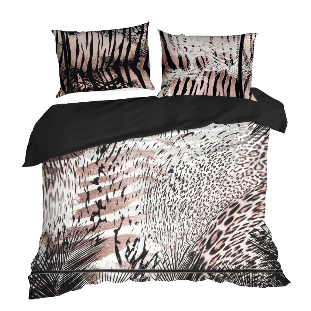 Ložní souprava je vyrobena z nejkvalitnějšího bavlněného saténu, který se vyznačuje jemnou měkkostí, hedvábným leskem a mimořádnou odolností. Povlečení je složeno ze dvou látek - vrchní stranu zdobí panelový potisk s designovým vzorem a spodní hladká černá látka, která vytváří stylovou a výraznou kompozici. Moderní a odolná technologie barvení zajišťuje, že povlečení neztrácí na intenzitě a barevnosti ani po mnoha vypráních, povlečení má v sobě systém zipů. Šířka: 220 cm, délka: 200 cm, povlak na polštář 2 ks 70x80 cm, barva: vícebarevná, gramáž: 125 GSM, složení: 100% bavlna.Doplňkové parametry