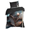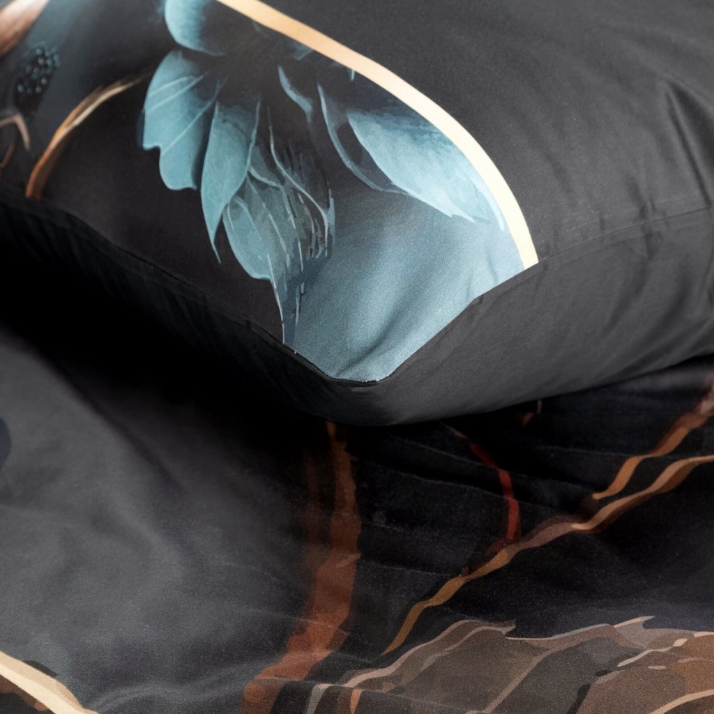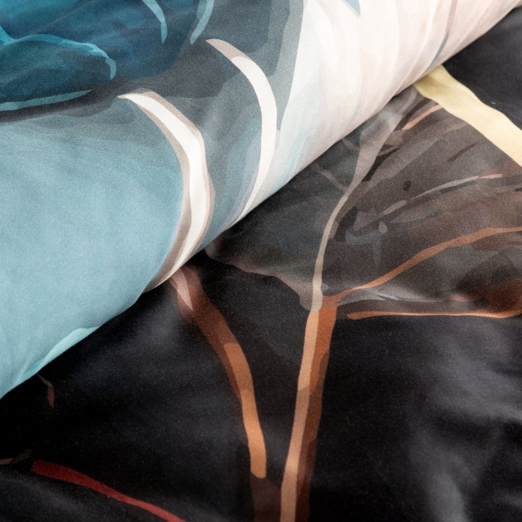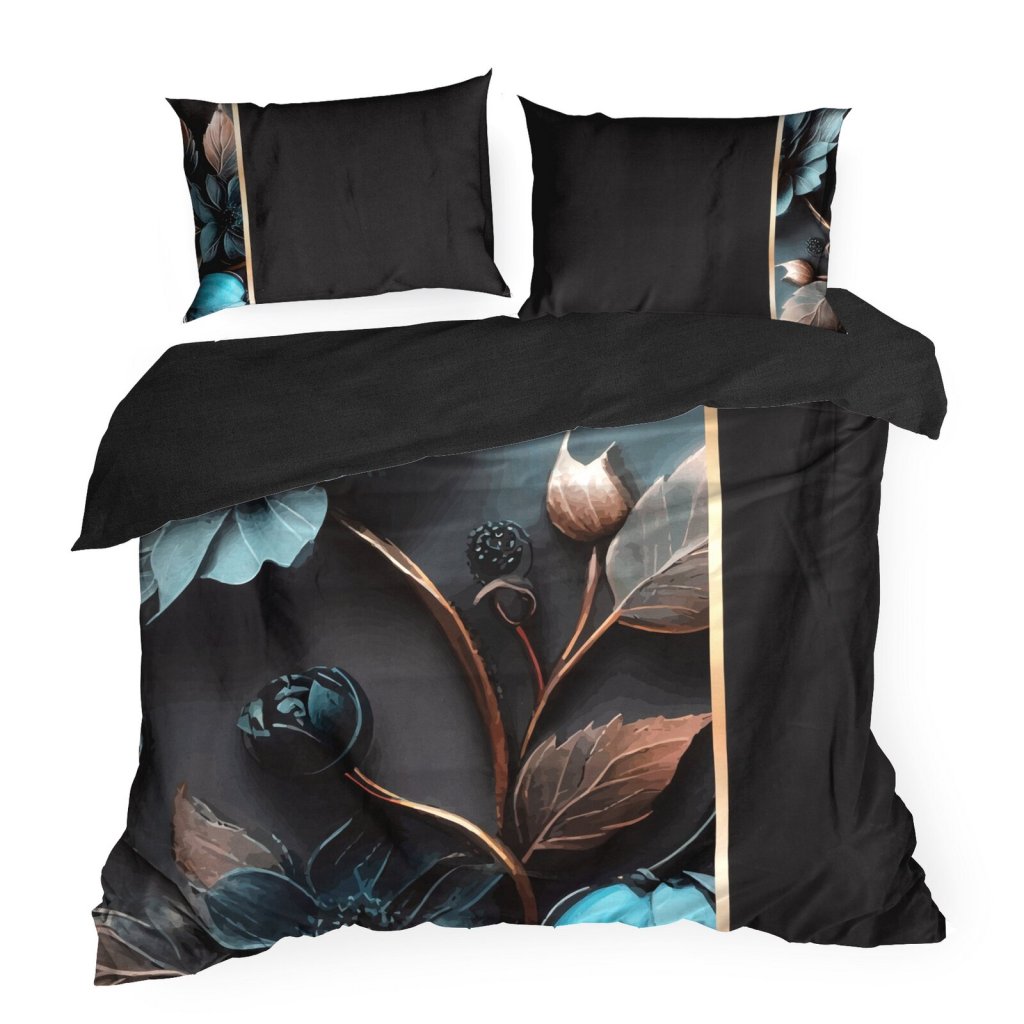 Ložní souprava je vyrobena z nejkvalitnějšího bavlněného saténu, který se vyznačuje jemnou měkkostí, hedvábným leskem a mimořádnou odolností. Povlečení je složeno ze dvou látek - vrchní stranu zdobí panelový potisk s designovým vzorem a spodní hladká černá látka, která vytváří stylovou a výraznou kompozici. Moderní a odolná technologie barvení zajišťuje, že povlečení neztrácí na intenzitě a barevnosti ani po mnoha vypráních, povlečení má v sobě systém zipů. Šířka: 220 cm, délka: 200 cm, povlak na polštář 2 ks 70x80 cm, barva: vícebarevná, gramáž: 125 GSM, složení: 100% bavlna.Doplňkové parametry