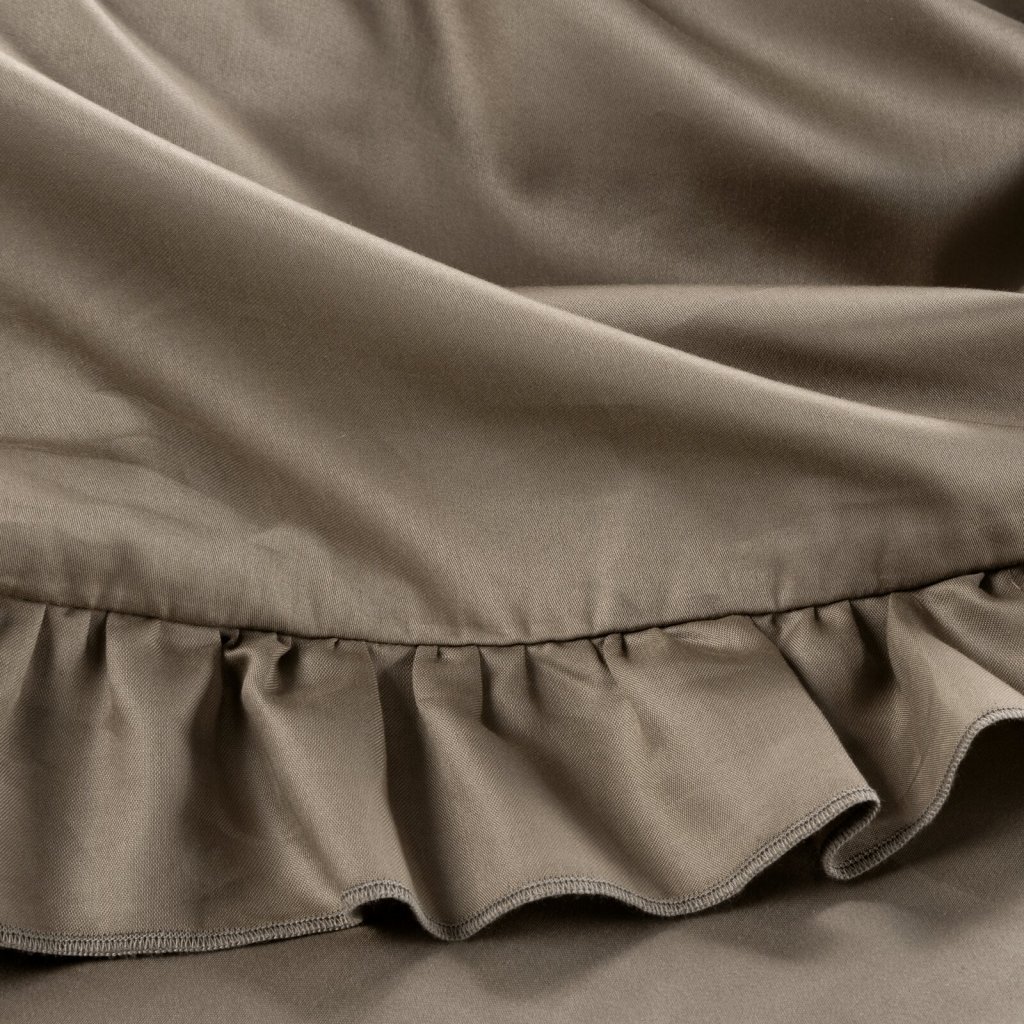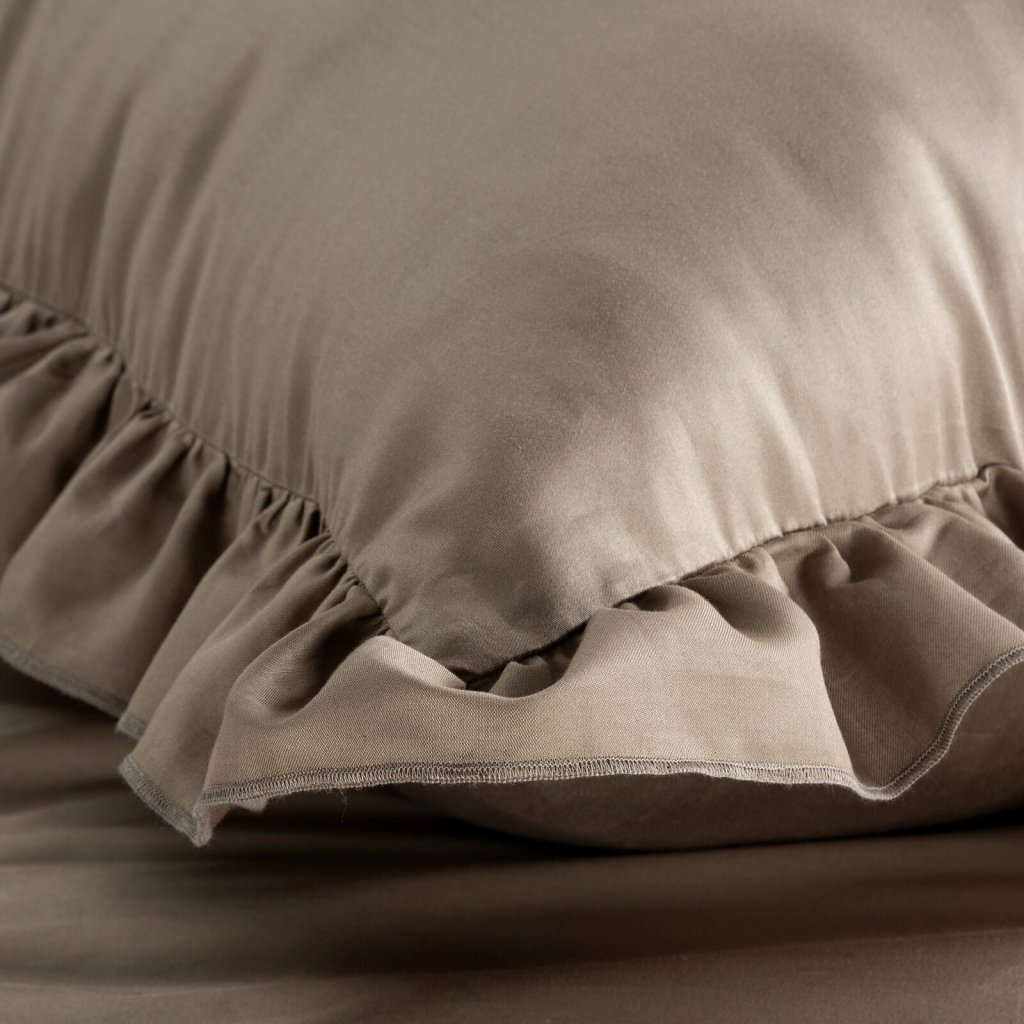 Makosatinová sada povlaků na polštář zdobená volánkovým lemem, šířka: 160 cm, délka: 200 cm, povlak na polštář: 2 ks 70x80 cm, barva: hnědá, gramáž: 125 GSM, složení: 100% bavlna.Povlečení na polštář: 2 ks 70x80 cm, barva: hnědá, gramáž: 125 GSM, složení: 100% bavlna.