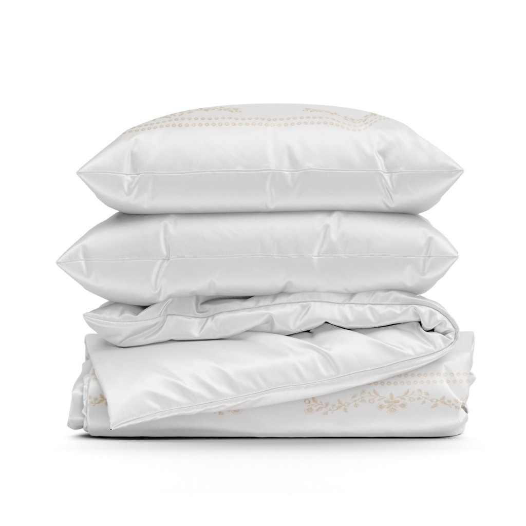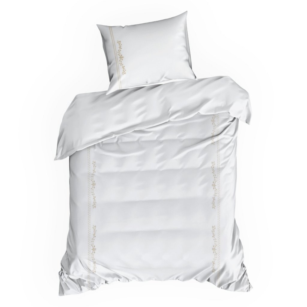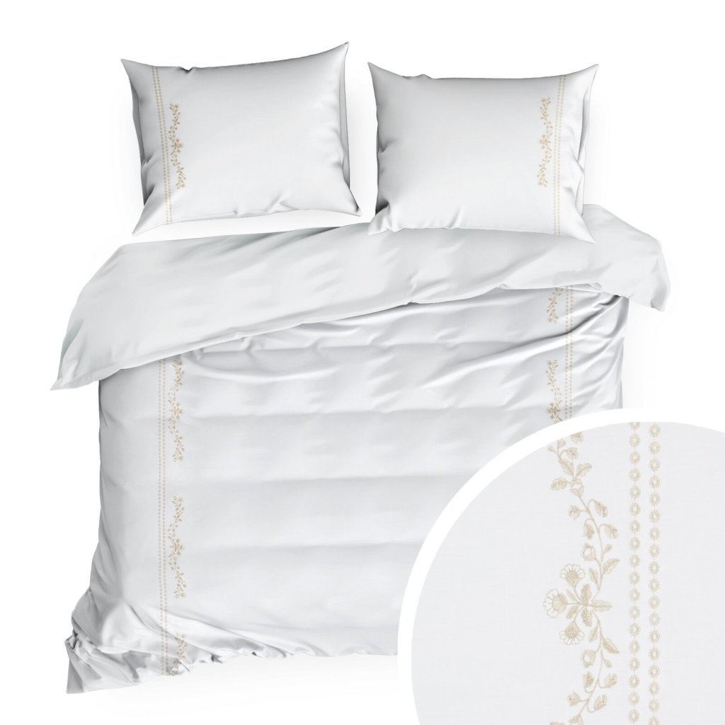 Bavlněné makosateenové povlečení RENIA, utkané z egyptské bavlny, je ideální volbou pro ty, kteří chtějí mít během spánku maximální pohodlí. Egyptská bavlna je známá svými dlouhými a jemnými vlákny, díky nimž je tkanina mimořádně měkká, hladká a odolná. Povlečení je zdobeno jemnou výšivkou s květinovým motivem podél okrajů povlečení, tento rafinovaný detail dodává celé soupravě luxusní nádech. Výrobek má certifikát Oeko-Tex Standard 100, což znamená, že neobsahuje škodlivé látky a je bezpečný pro pokožku. Šířka: 160 cm, délka: 200 cm, povlak na polštář: 2 ks 70x80 cm, barva: bílá, gramáž: 125 GSM, složení: 100% bavlna.Doplňkové parametry