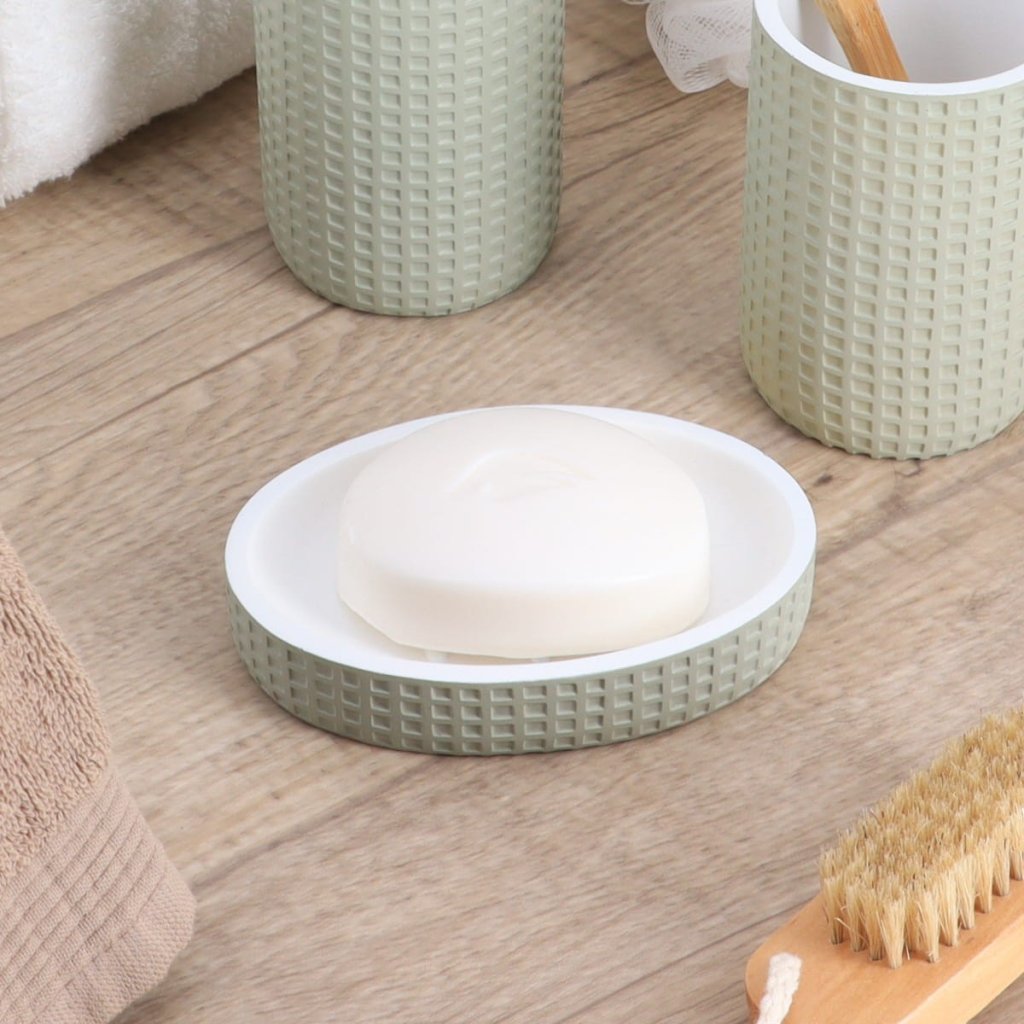 Dodejte své koupelně nádech elegance a funkčnosti s naší designovou mýdlenou z kolekce Averaimo od francouzské značky Tendance. Mýdlenka byla vytvořena tak, aby poskytovala ideální místo pro odkládání a prezentaci mýdla. Její pevná konstrukce zajišťuje stabilitu a chrání mýdlo před náhodným sklouznutím. Naše miska na mýdlo je nejen krásná, ale také pohodlná k použití. Její ergonomický tvar a pohodlné rozměry vám umožňují snadno umístit různé druhy mýdla, tyčinkového i tekutého. V naší nabídce naleznete také koupelnový hrnek ze stejné kolekce.Doplňky z kolekce Averaimo se vyznačují hranatými drážkami na celé ploše. Zelená barva jemně zvýrazňuje tvar výrobku, což ve spojení s originálním designem vytváří jedinečný efekt. Kolekce Averaimo je vynikající volbou pro lidi, kteří hledají designové a minimalistické doplňky.